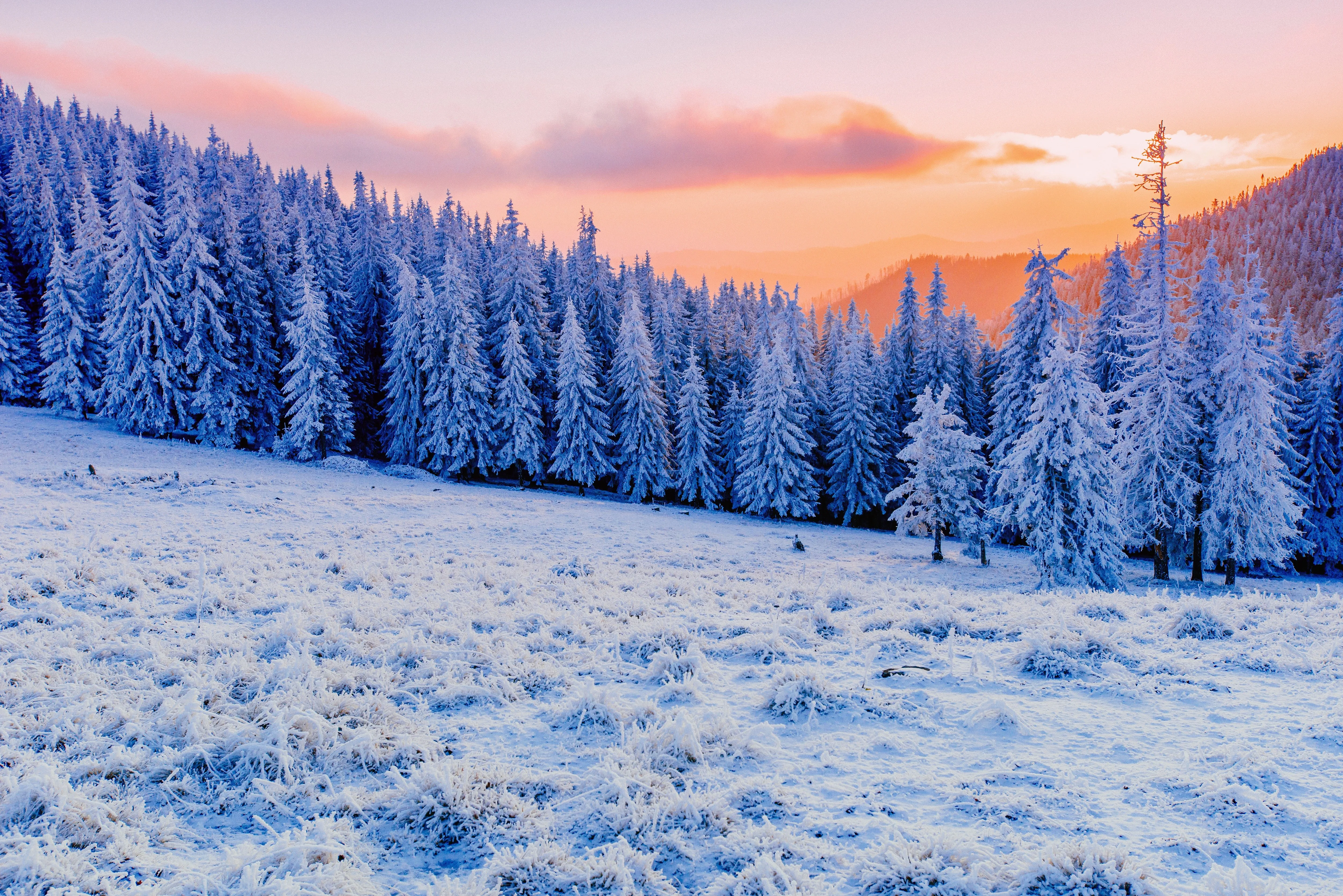 晶莹纯净美4K自然雪 森林 树木 电脑手机壁纸