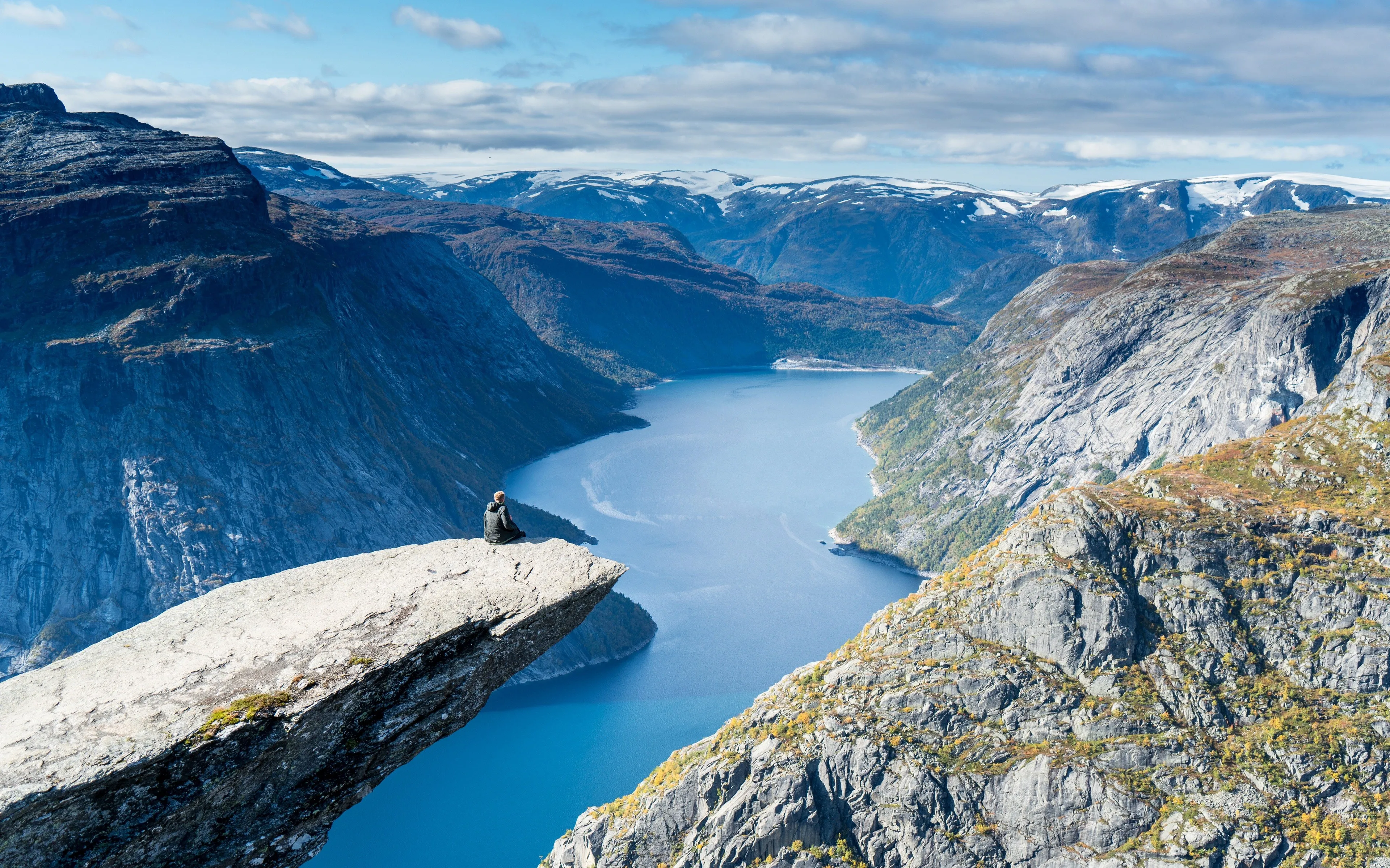 自然 风景 挪威 山脉 峡湾 岩石 天空 云 全景 水 雪  电脑壁纸 4k壁纸