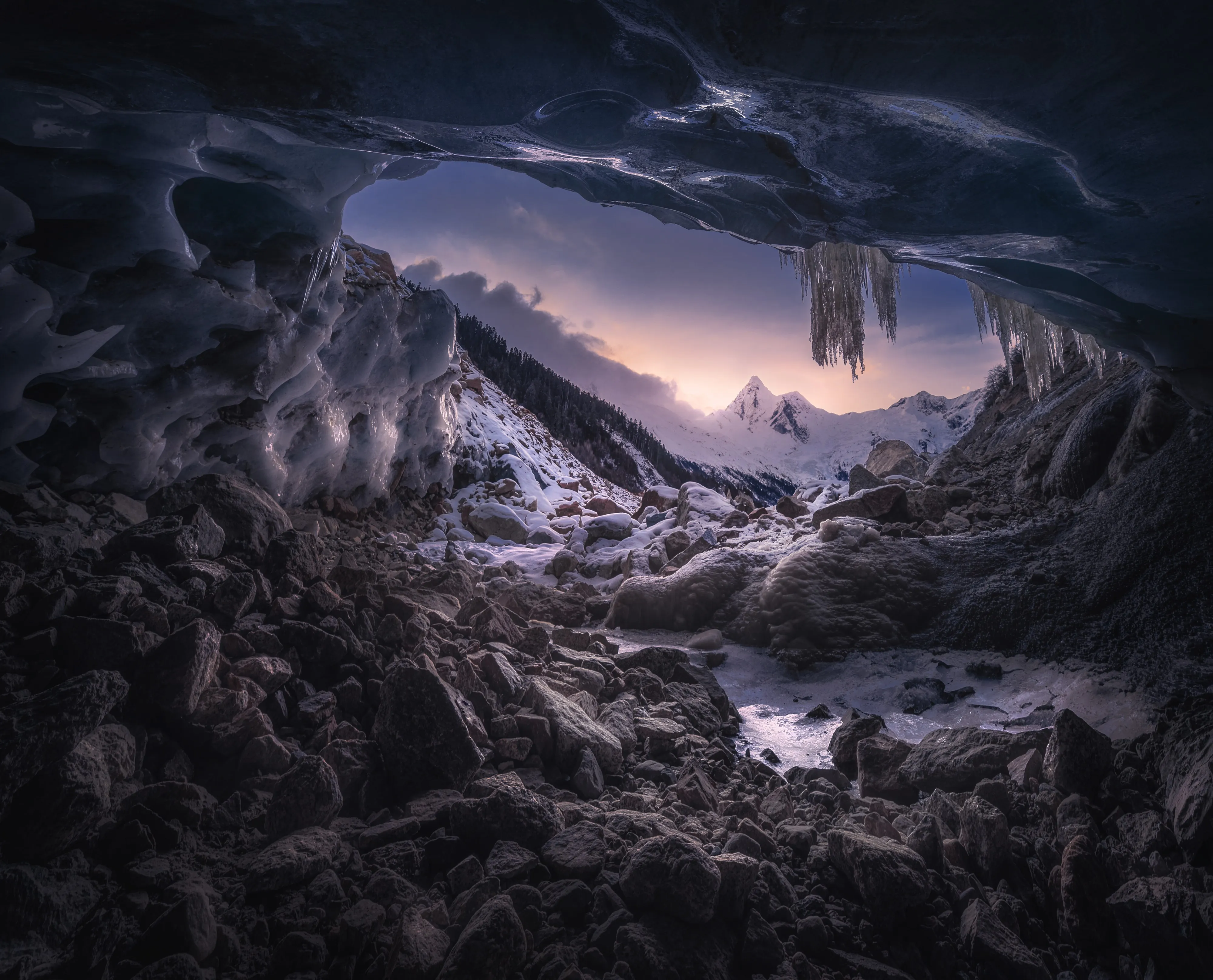 晶莹纯净美4K风景山口 雪 山脉 电脑手机壁纸