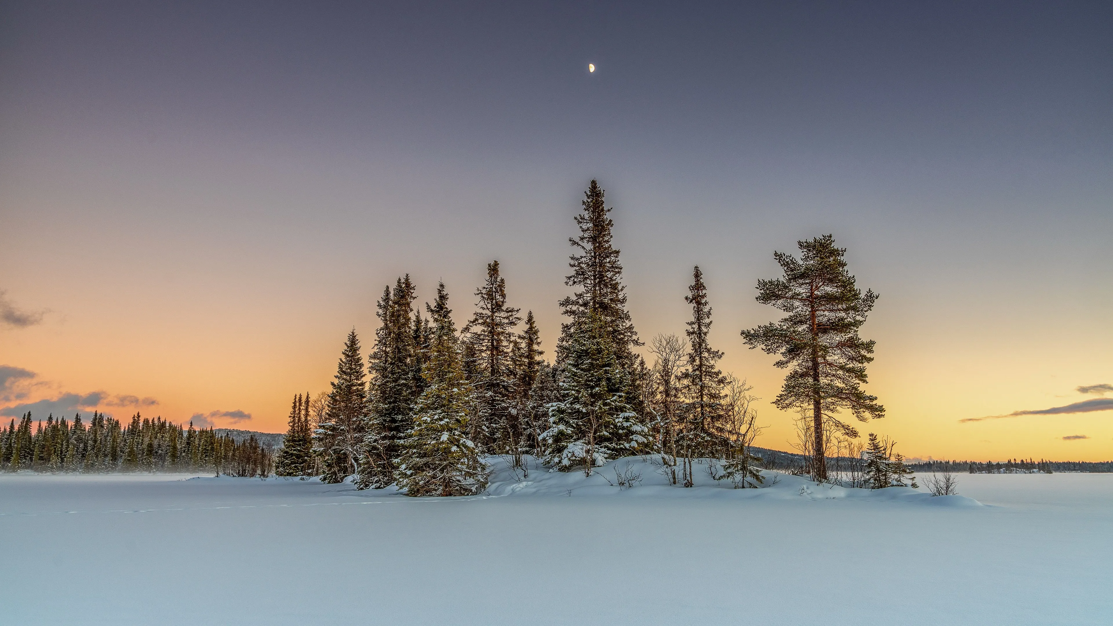 晶莹纯净美4K风景雪 橙色天空 冬季 电脑手机壁纸