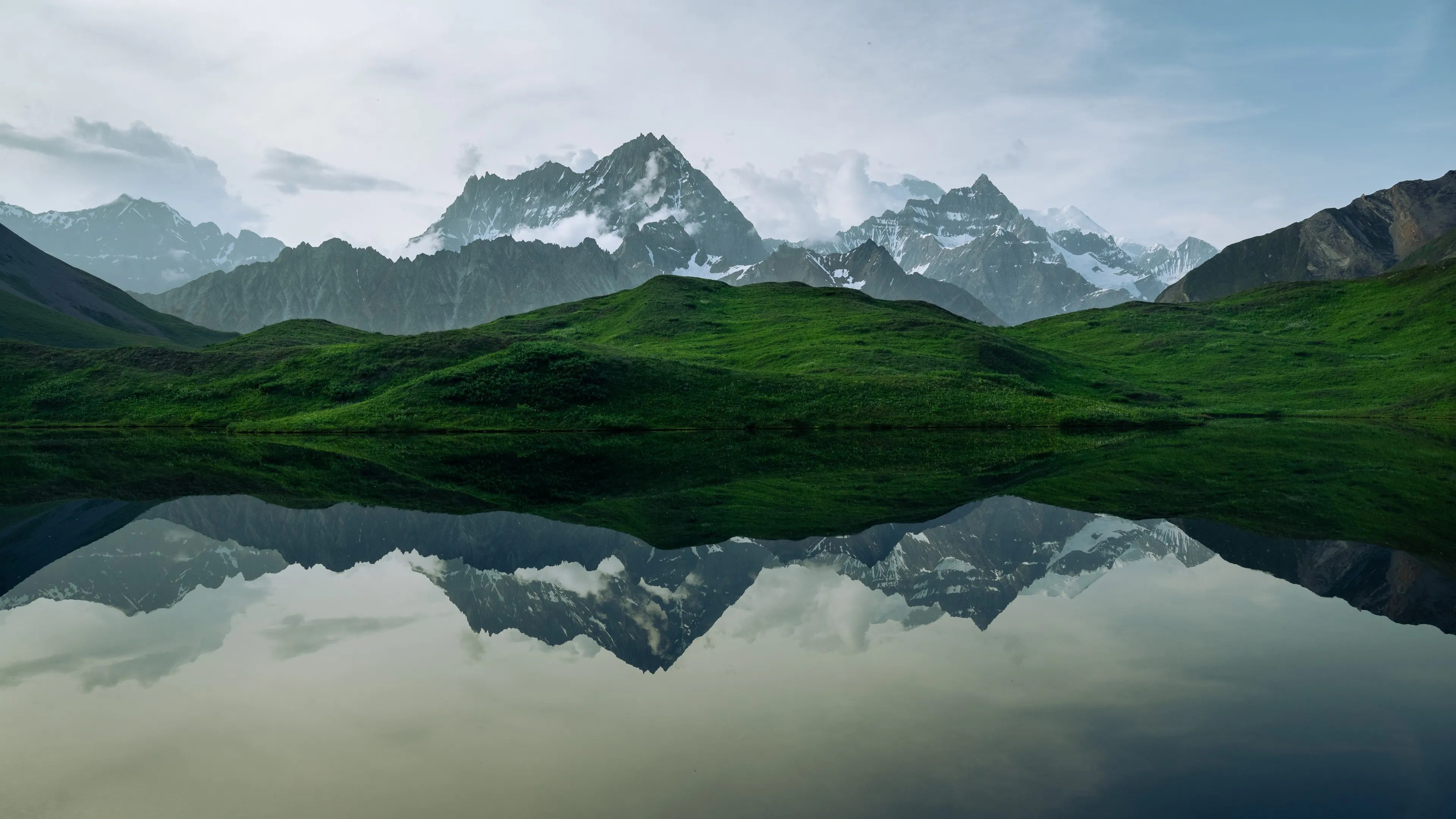 自然 风景 山脉 云 天空 水草 山丘 雪 4k壁纸