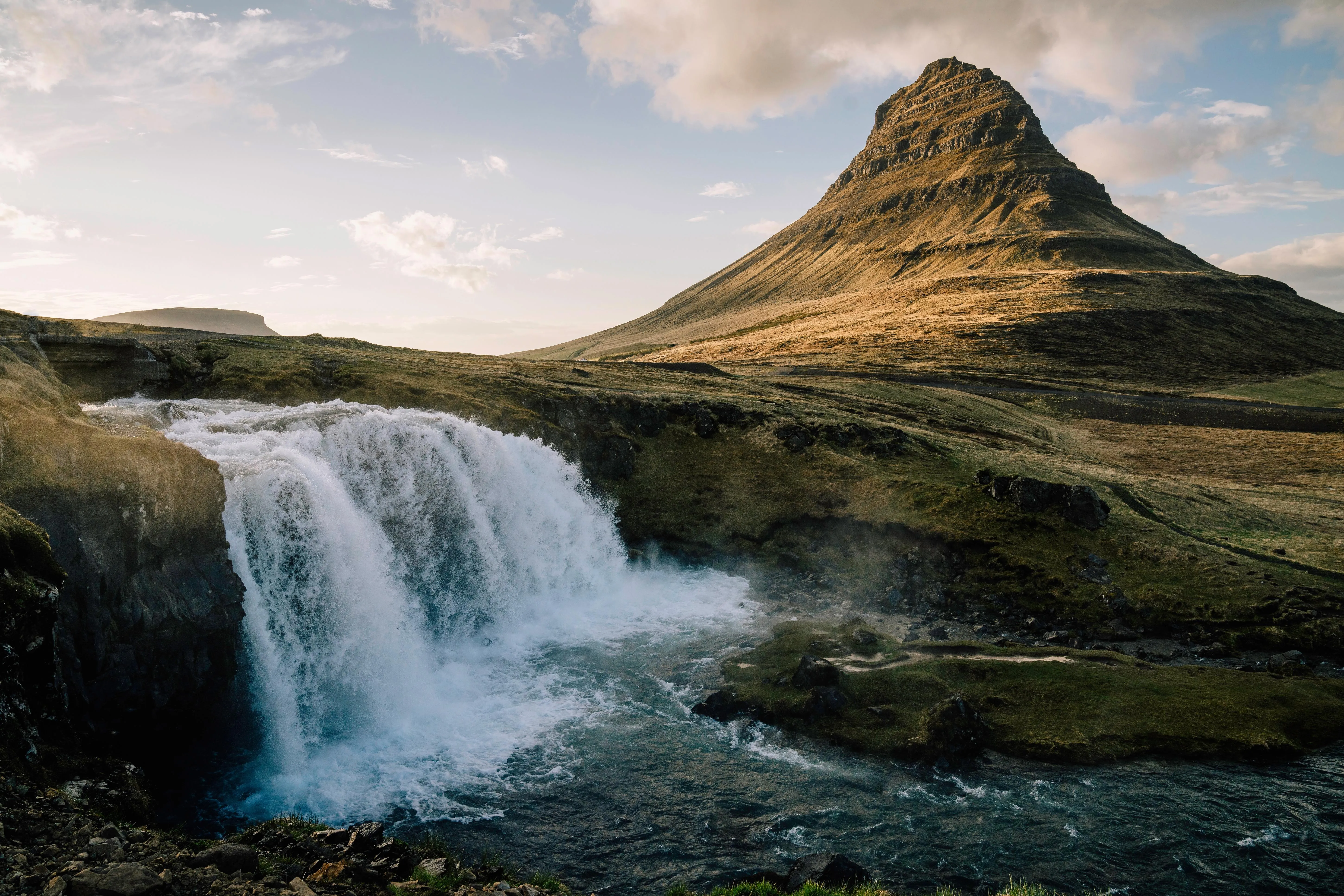 山脉 风景 自然 云 河流 瀑布 田野 冰岛 日落 4k壁纸