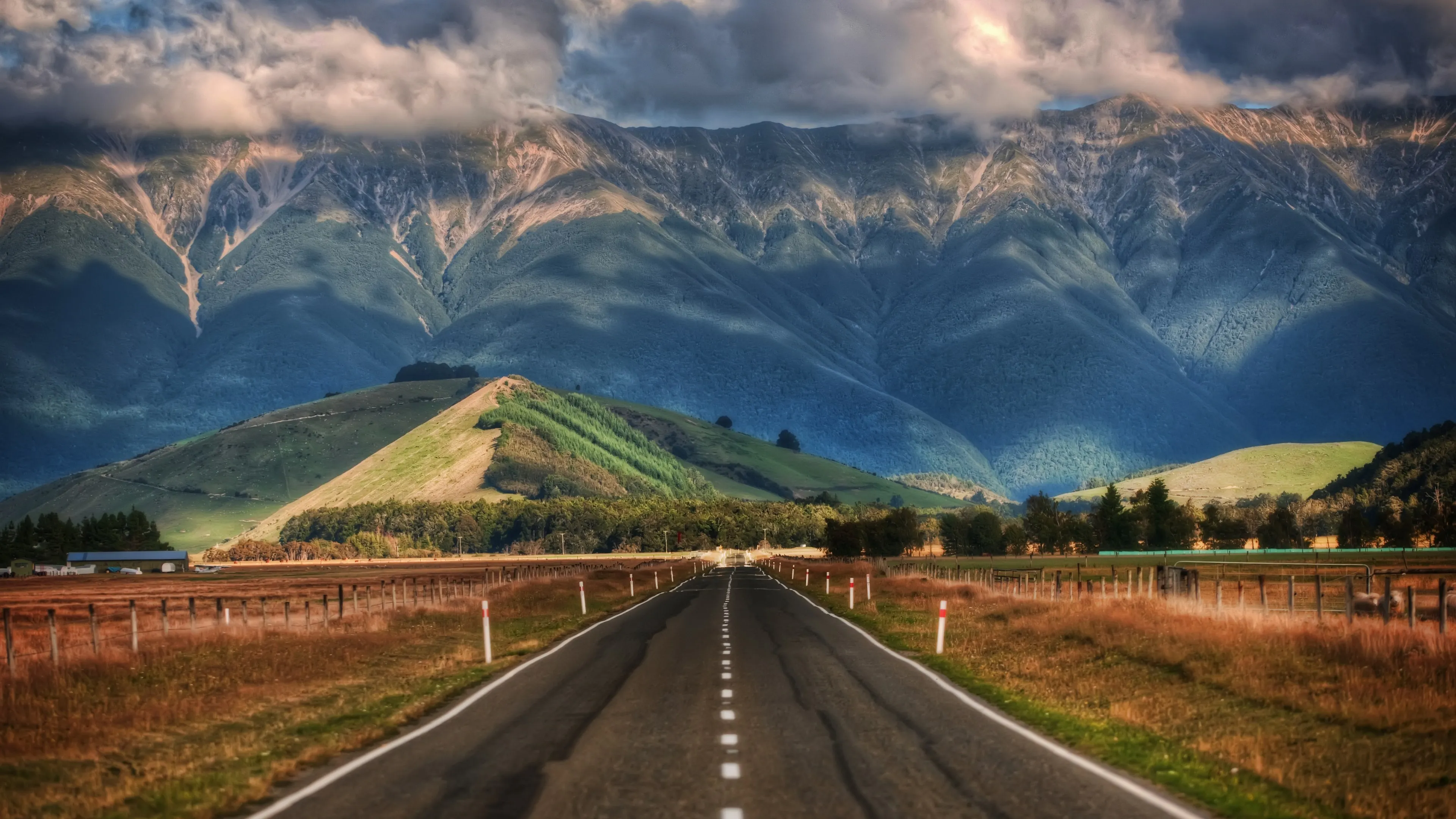 摄影 风景 自然 道路 山脉 草地 山脉 云彩 丘陵 树木 4k壁纸