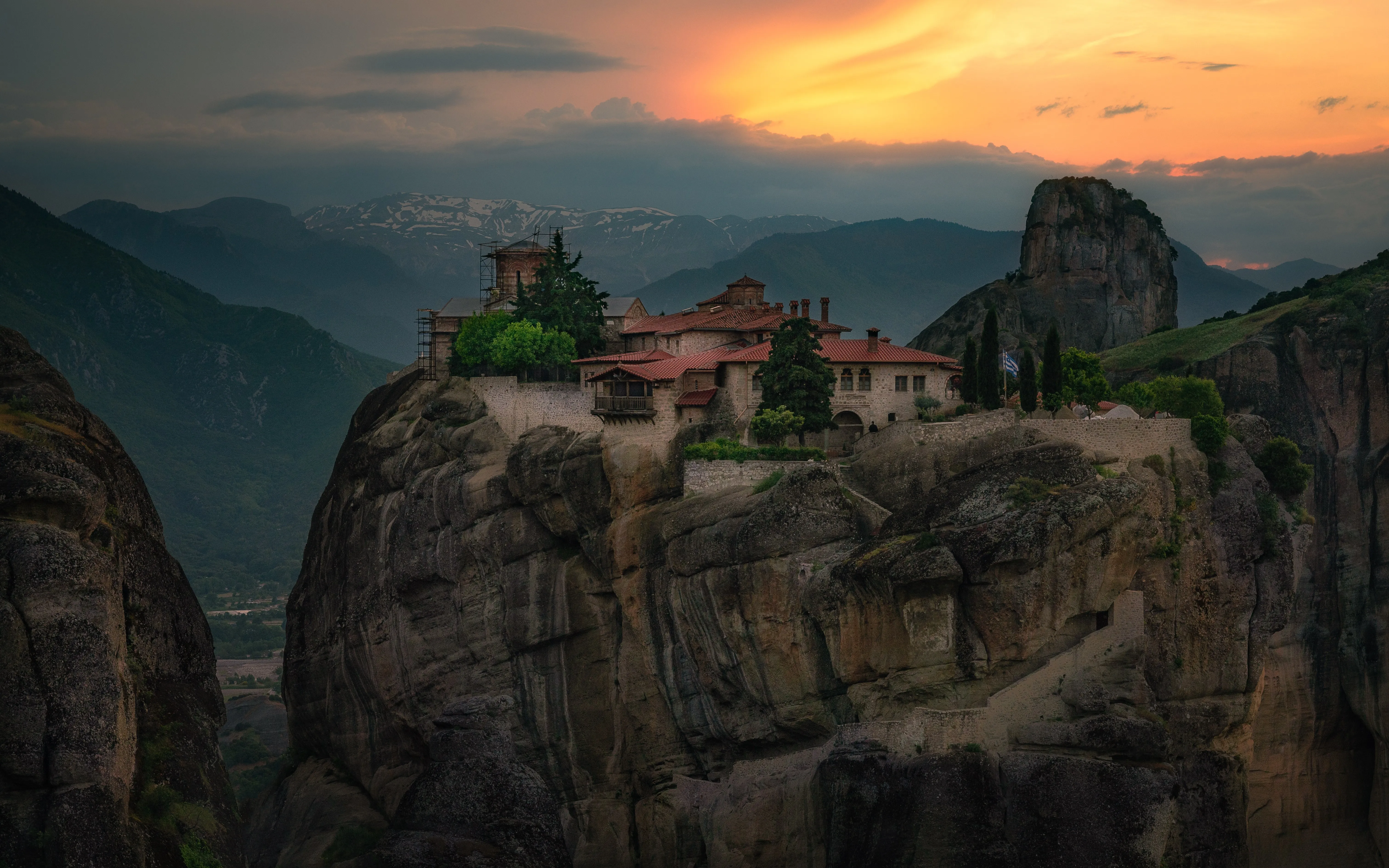 自然 景观 天空 云 岩石 山脉 树木 修道院 4k壁纸