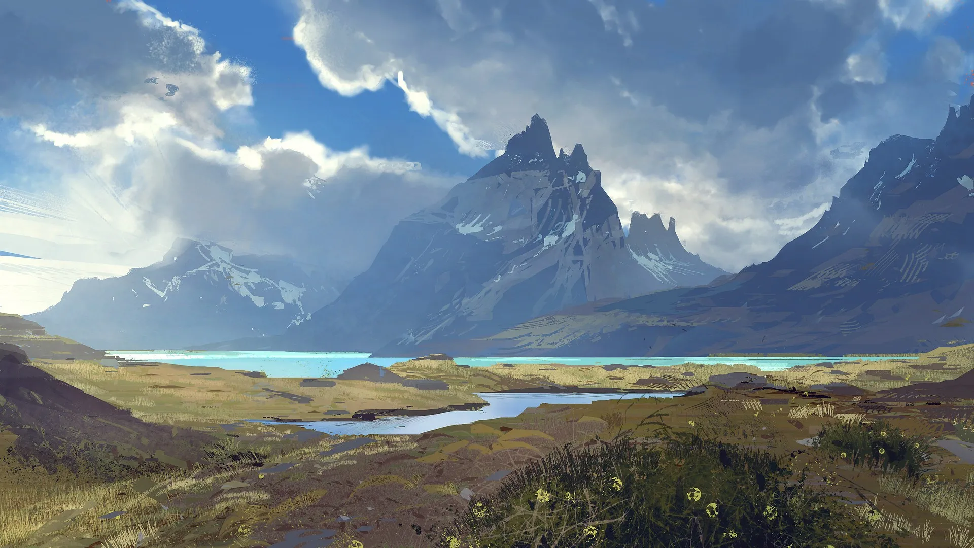创意独特美4KAI艺术风景山脉 河流 电脑壁纸