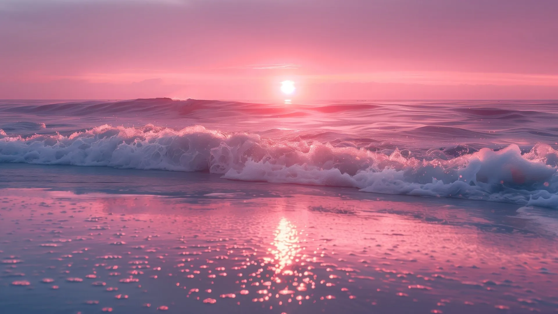唯美清新美4K风景波浪 海滩 粉色 电脑壁纸