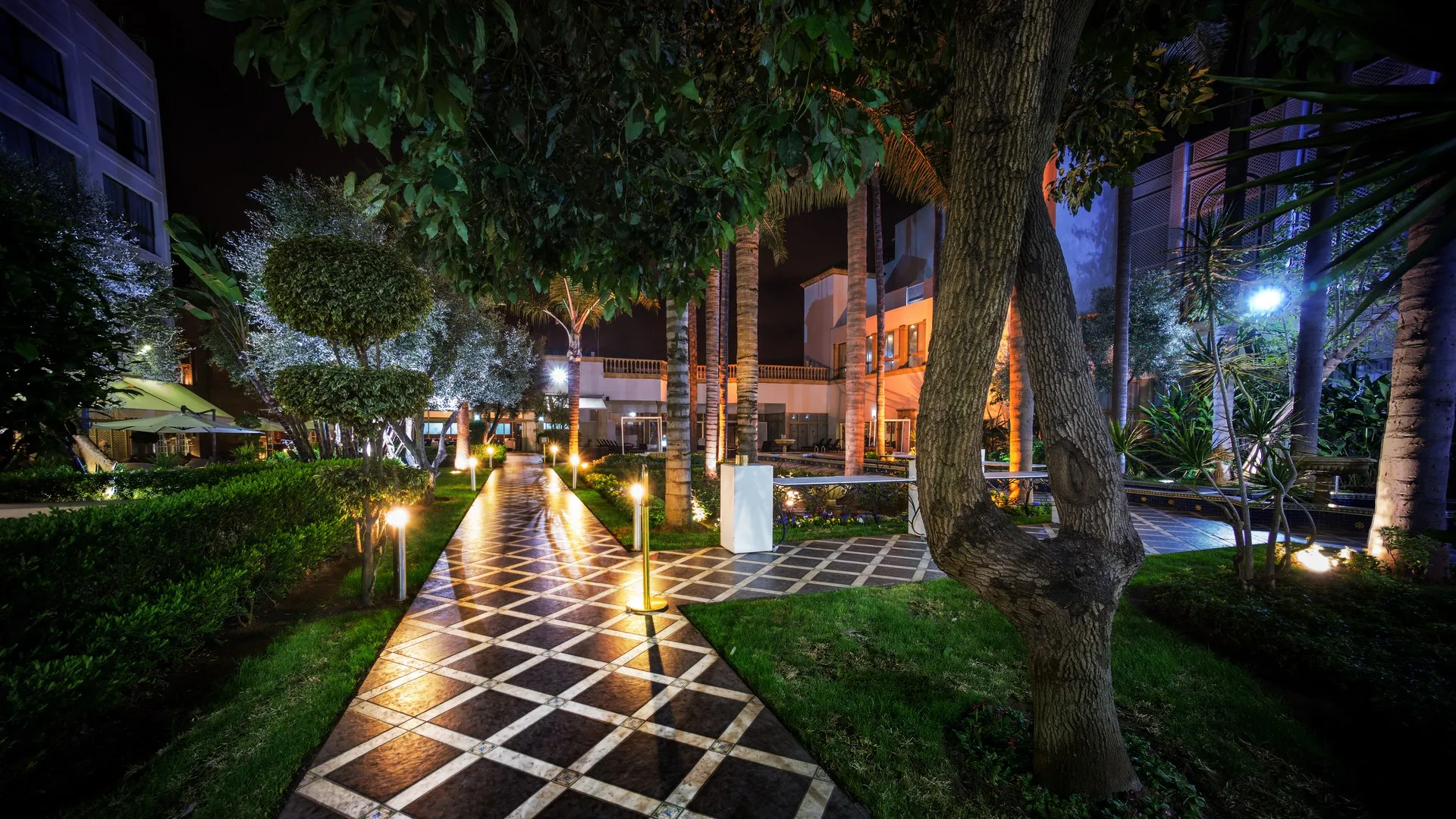 现代大气美4K风景夜 灯 树 电脑壁纸