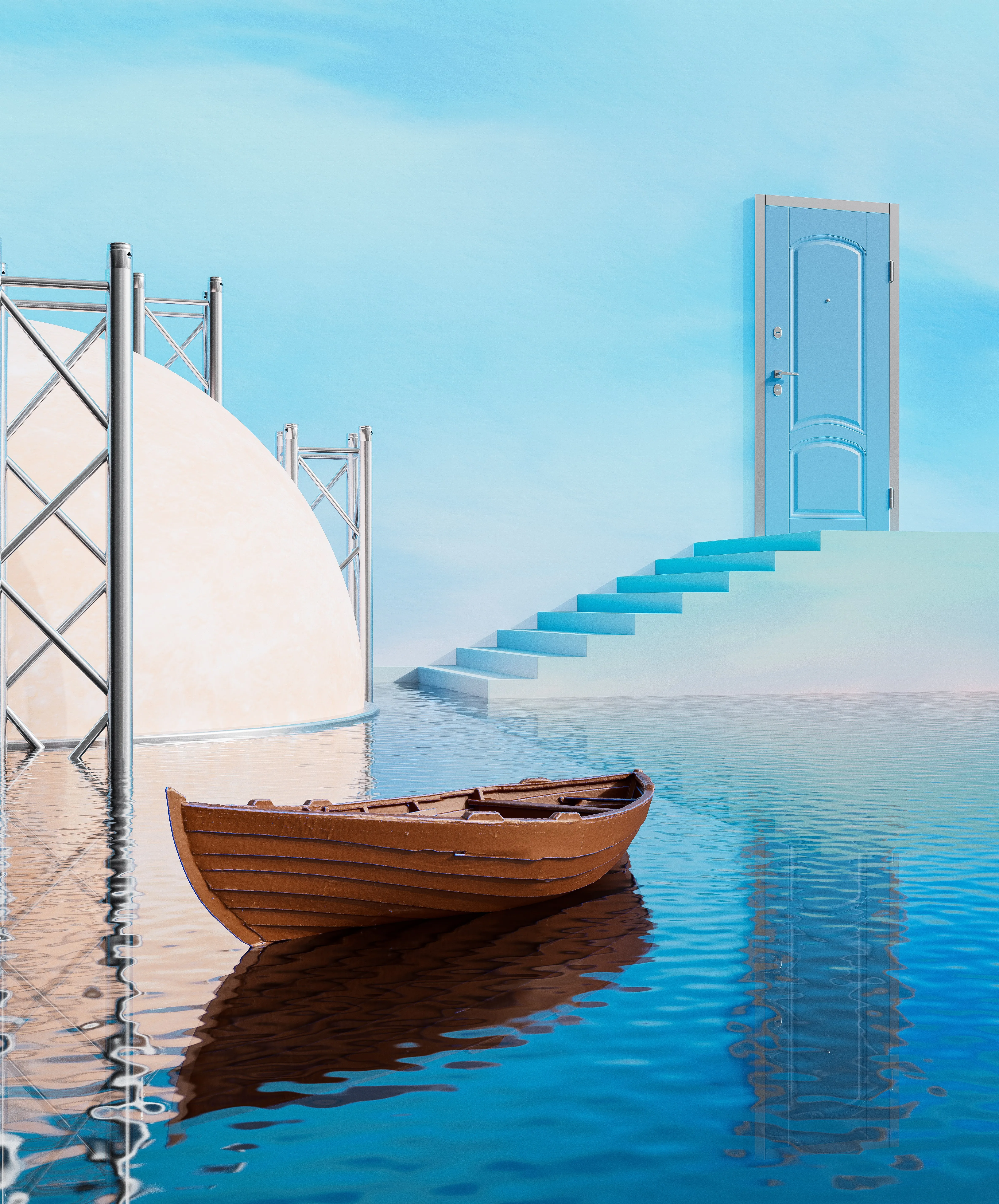 AI艺术 插图 蓝色 门 船 天空 手机壁纸 4k壁纸