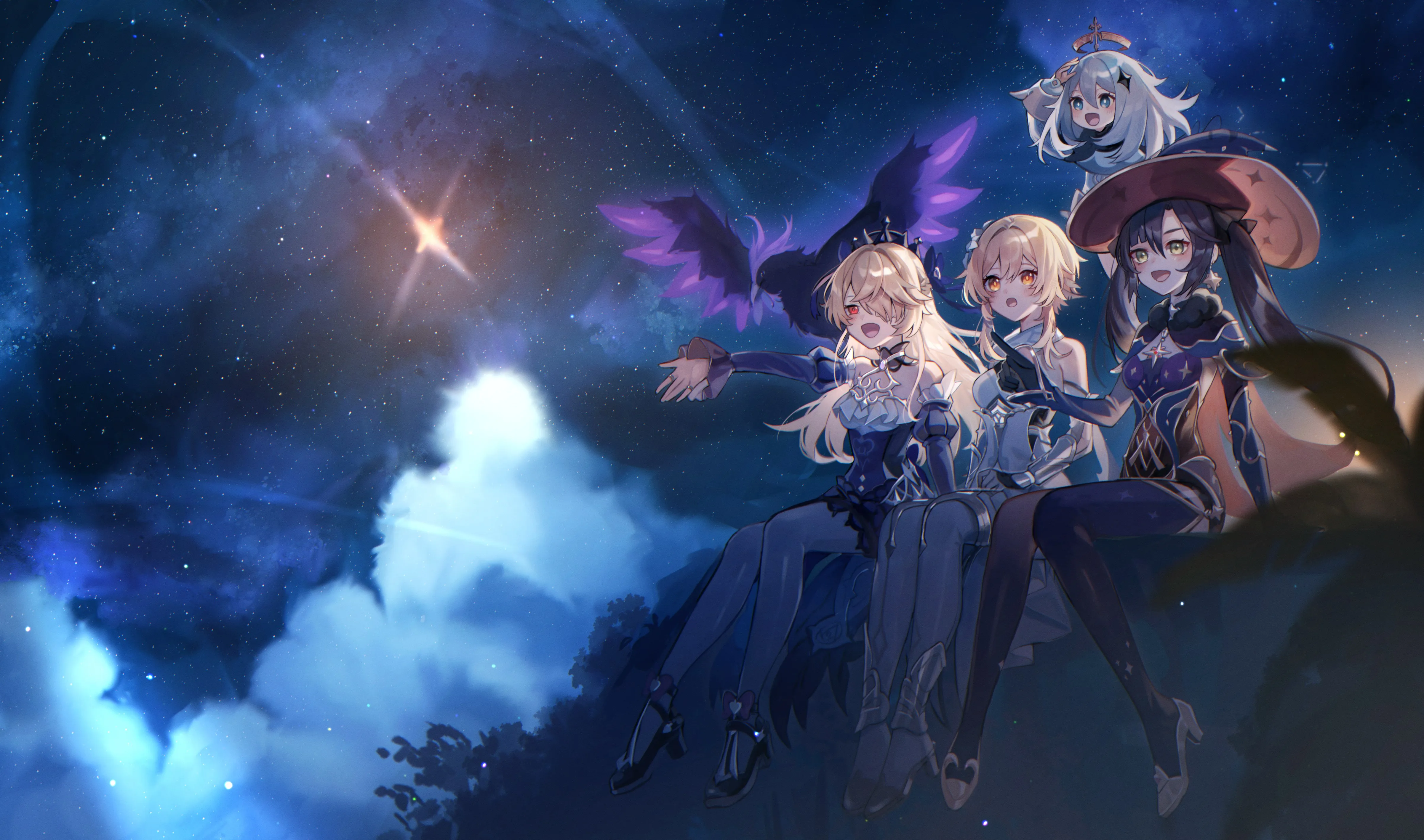 原神 夜晚 星星 动漫 女孩 星夜 可爱 萝莉 桌面壁纸 4k壁纸