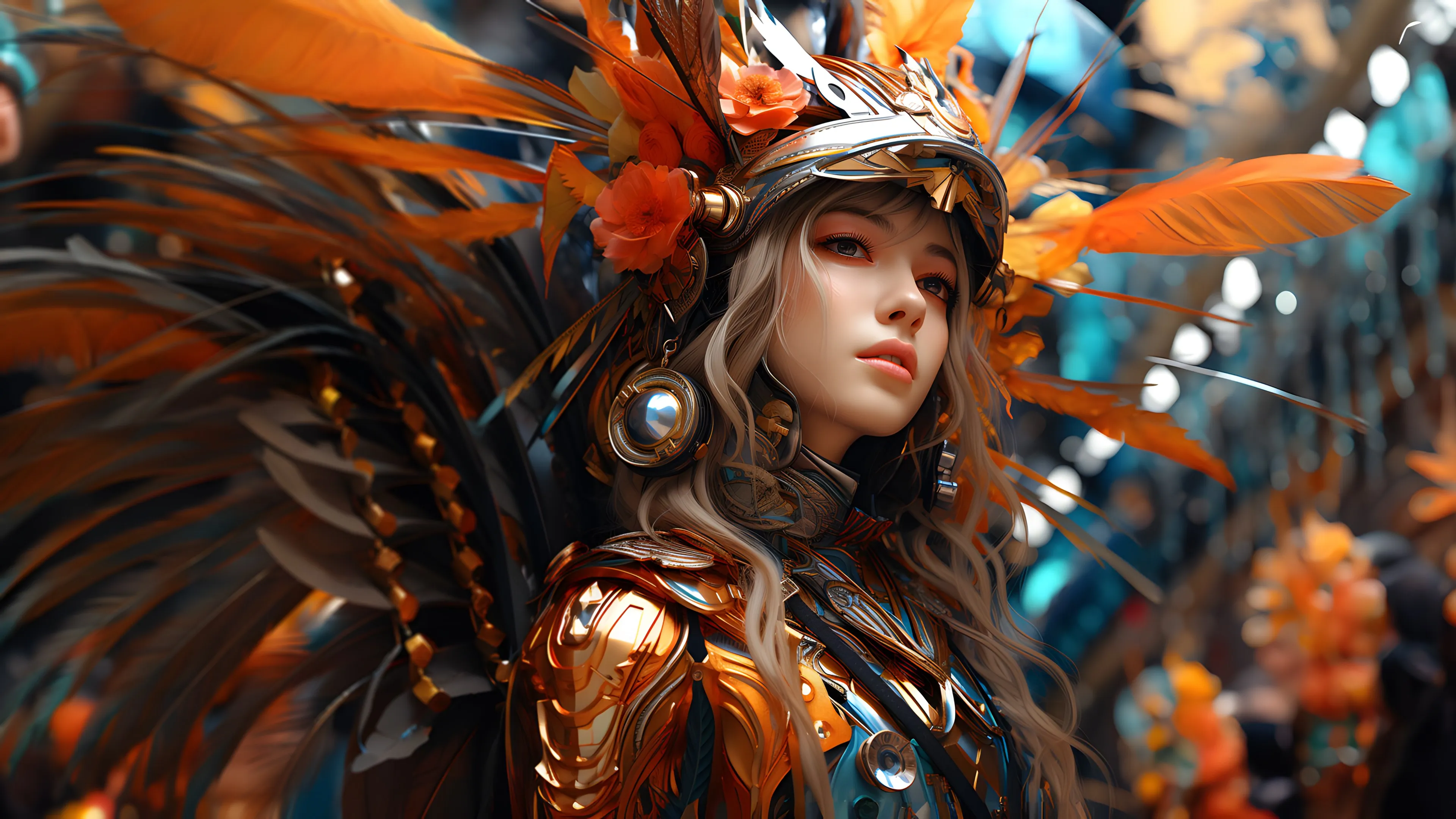 女人 长发 人工智能 羽毛 模糊 AI艺术  4k壁纸