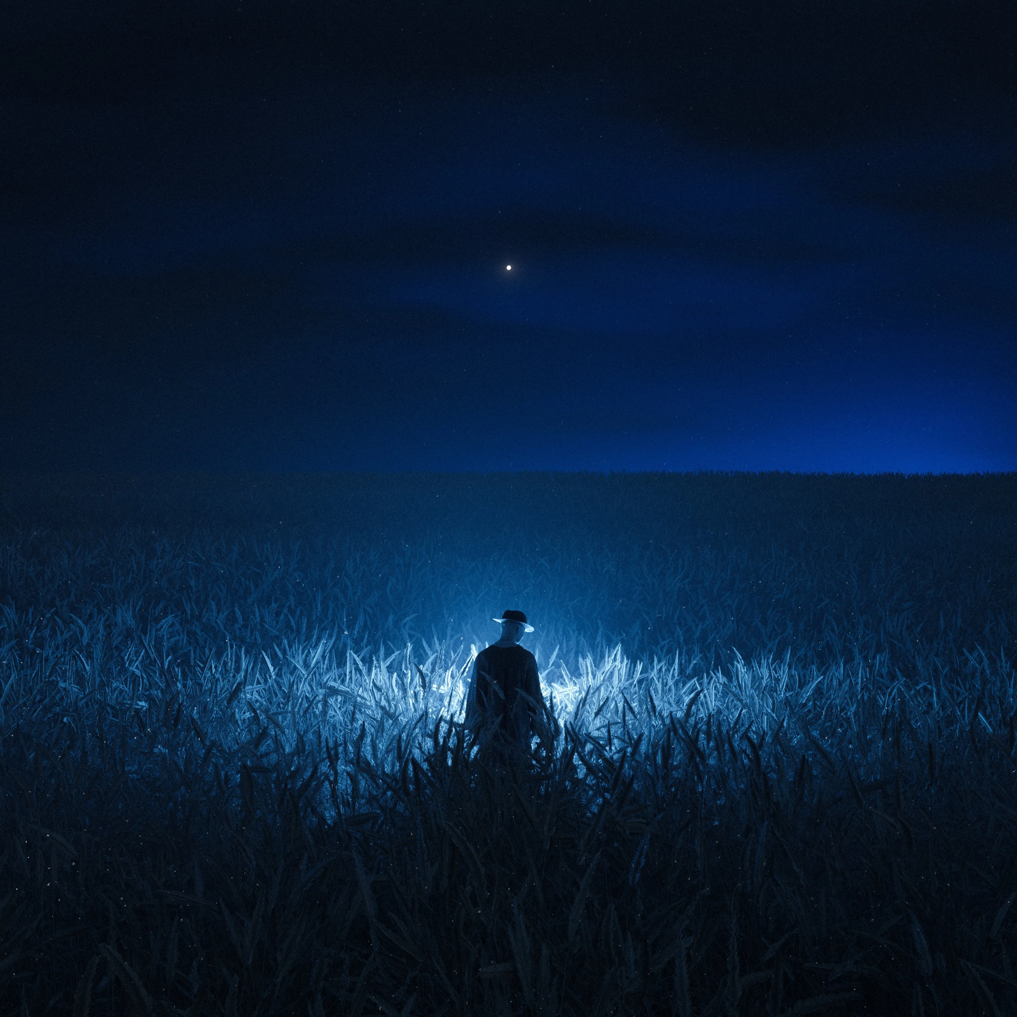 数字艺术 夜 农场 蓝光 田野 地平线 手机壁纸 4k壁纸