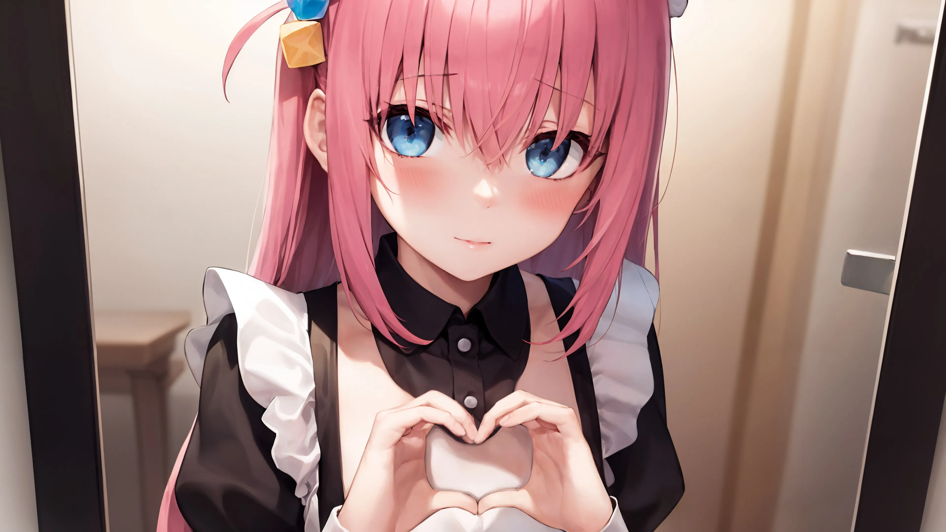 动漫女孩 动漫 女佣 艺术 女佣服装 腮红 心 心之手  桌面壁纸 4k壁纸