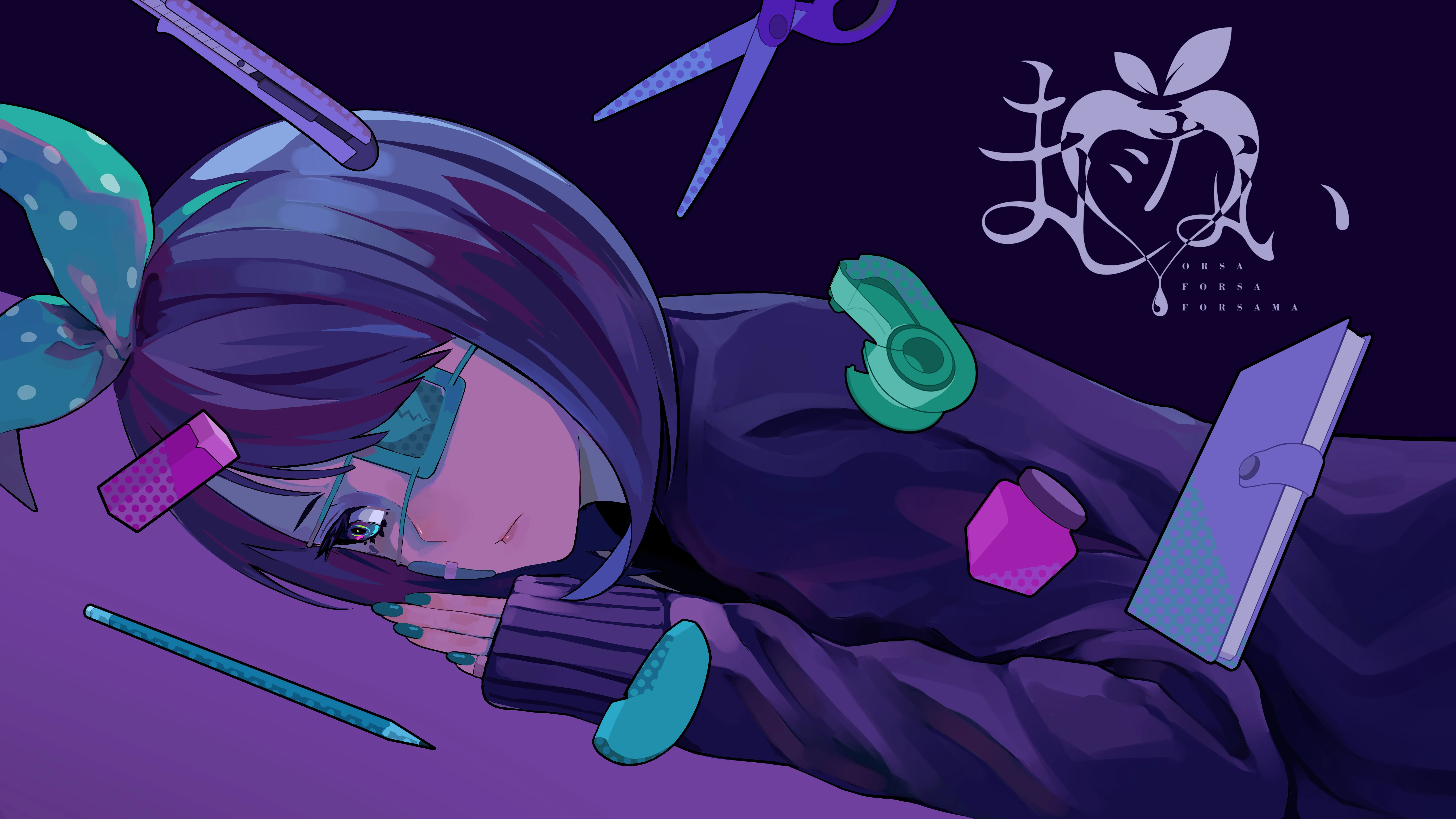 指甲 脸 黑发 短发 动漫女孩 头巾 铅笔 剪刀 书 毛衣 AI艺术  创可贴 动漫 眼罩 桌面壁纸 8K壁纸