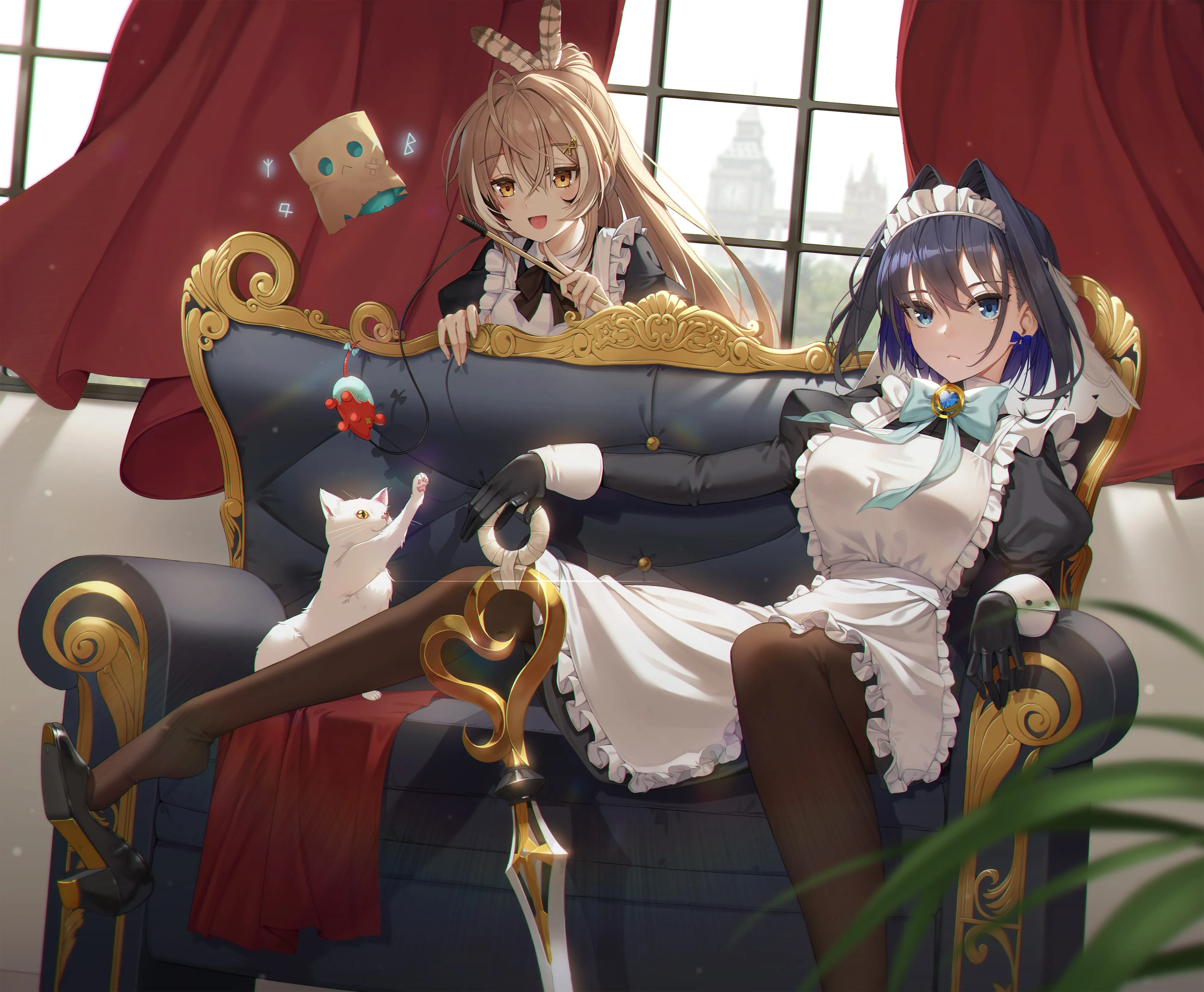 七夕 木美 动漫女孩 女仆 女仆装 沙发 虚拟 猫 叶子 短发 桌面壁纸 4k壁纸
