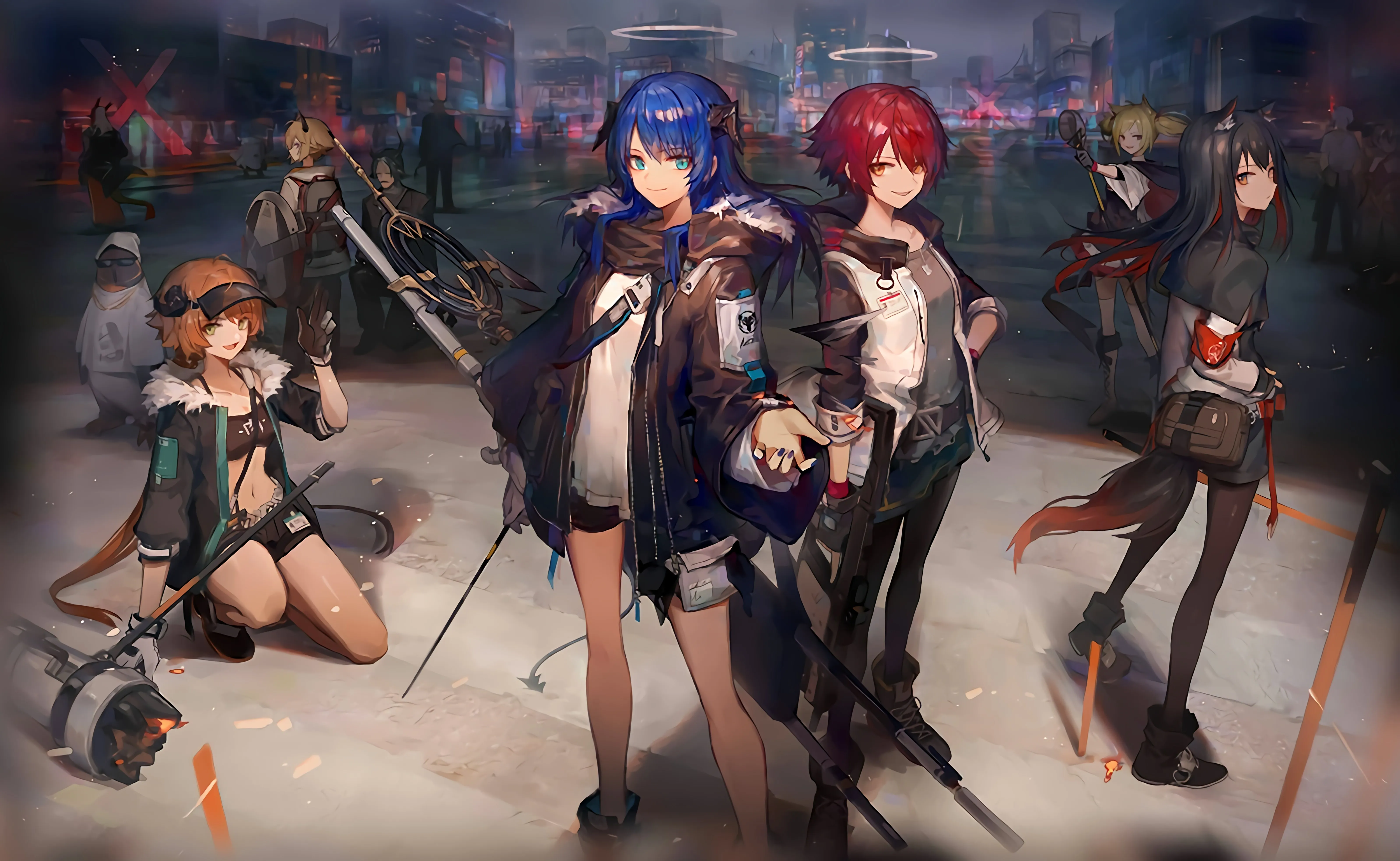 游戏 角色 红发 蓝发 武士 动漫女孩 游戏CG 艺术 尤西艾 武士 明日方舟 桌面壁纸 4k壁纸