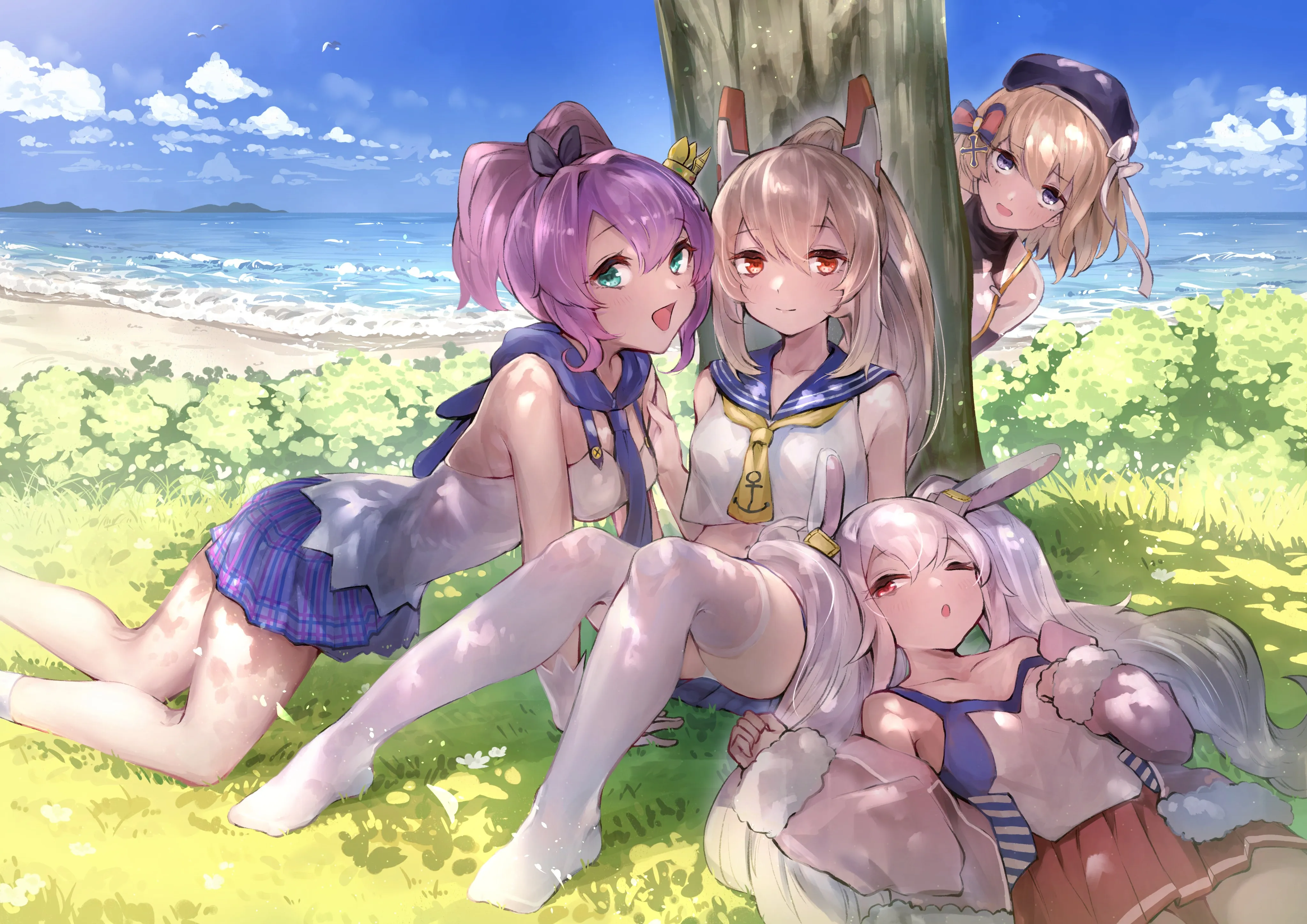 高清4k壁纸 动漫女孩抱腿 高清无水印壁纸下载