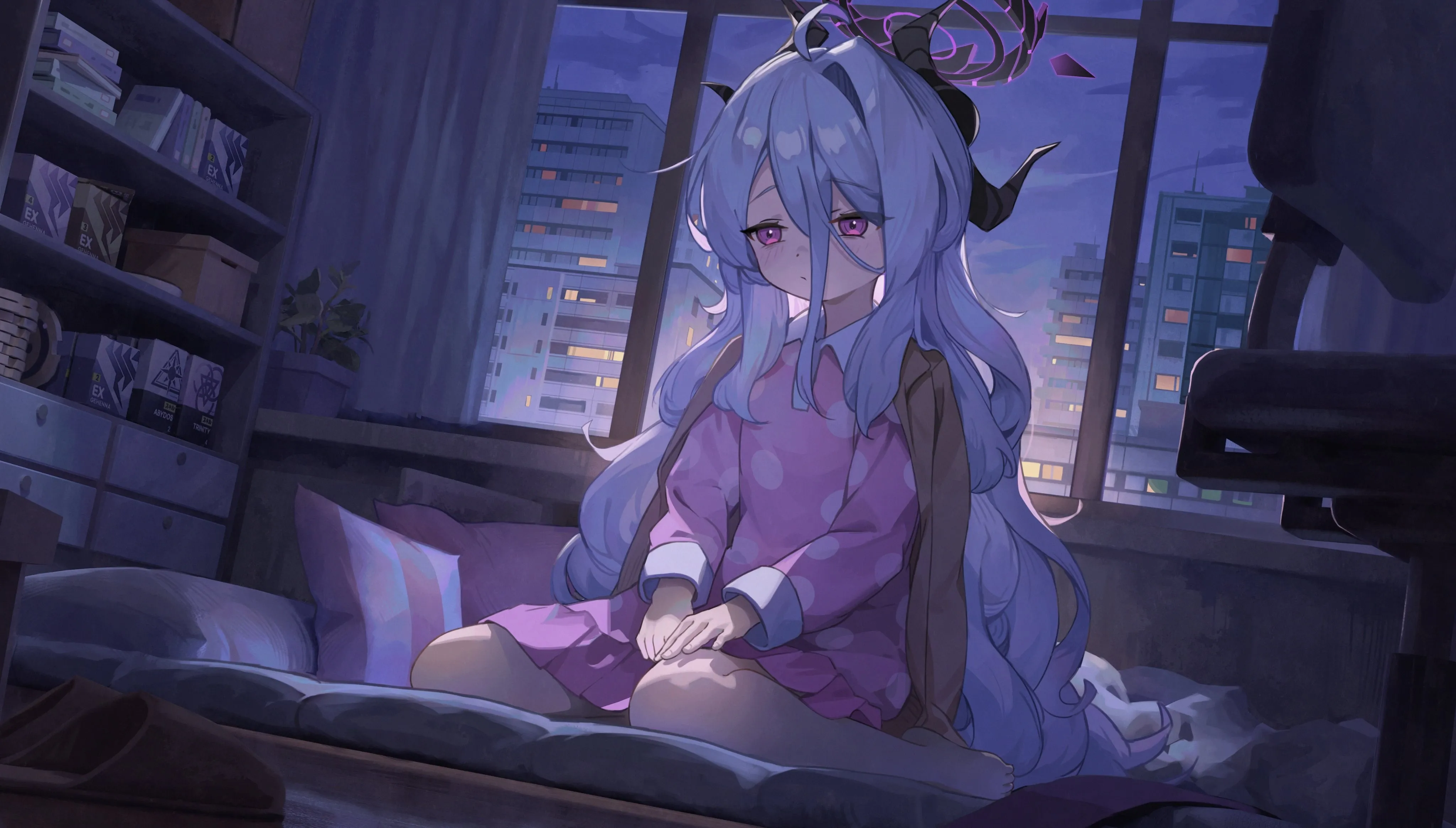 高清4k壁纸 动漫女孩抱腿 高清无水印壁纸下载