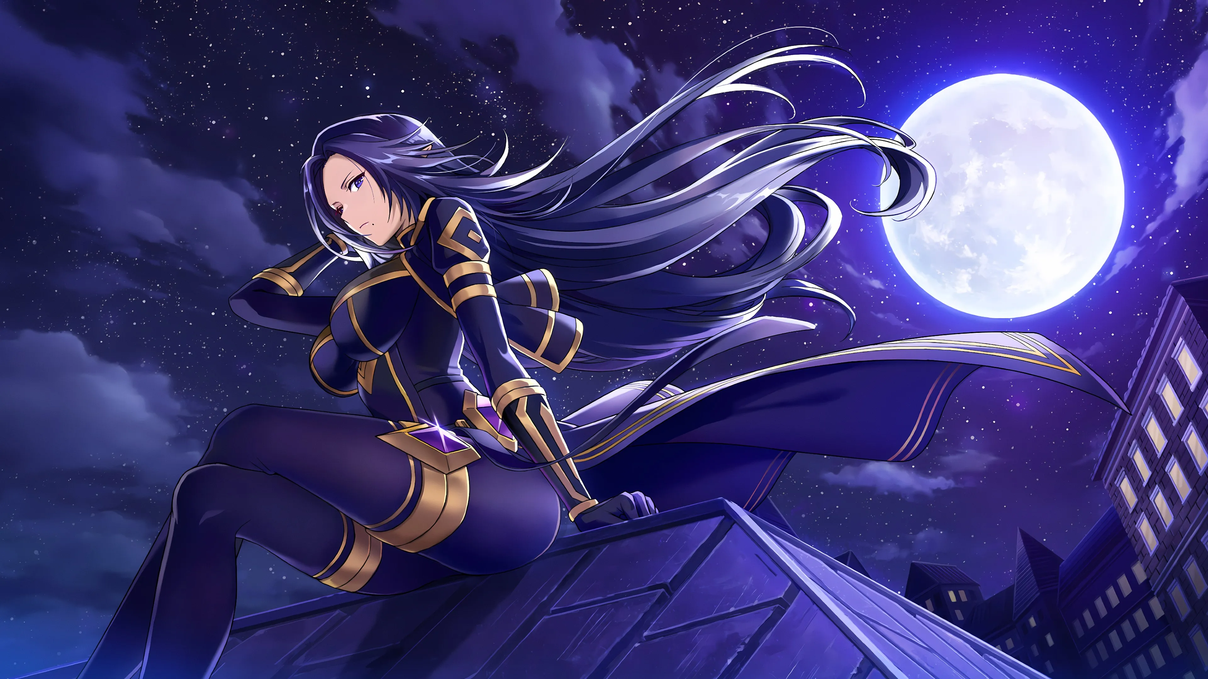 痣 暗影 动漫 月亮 动漫女孩 月光 尖耳朵  4k壁纸