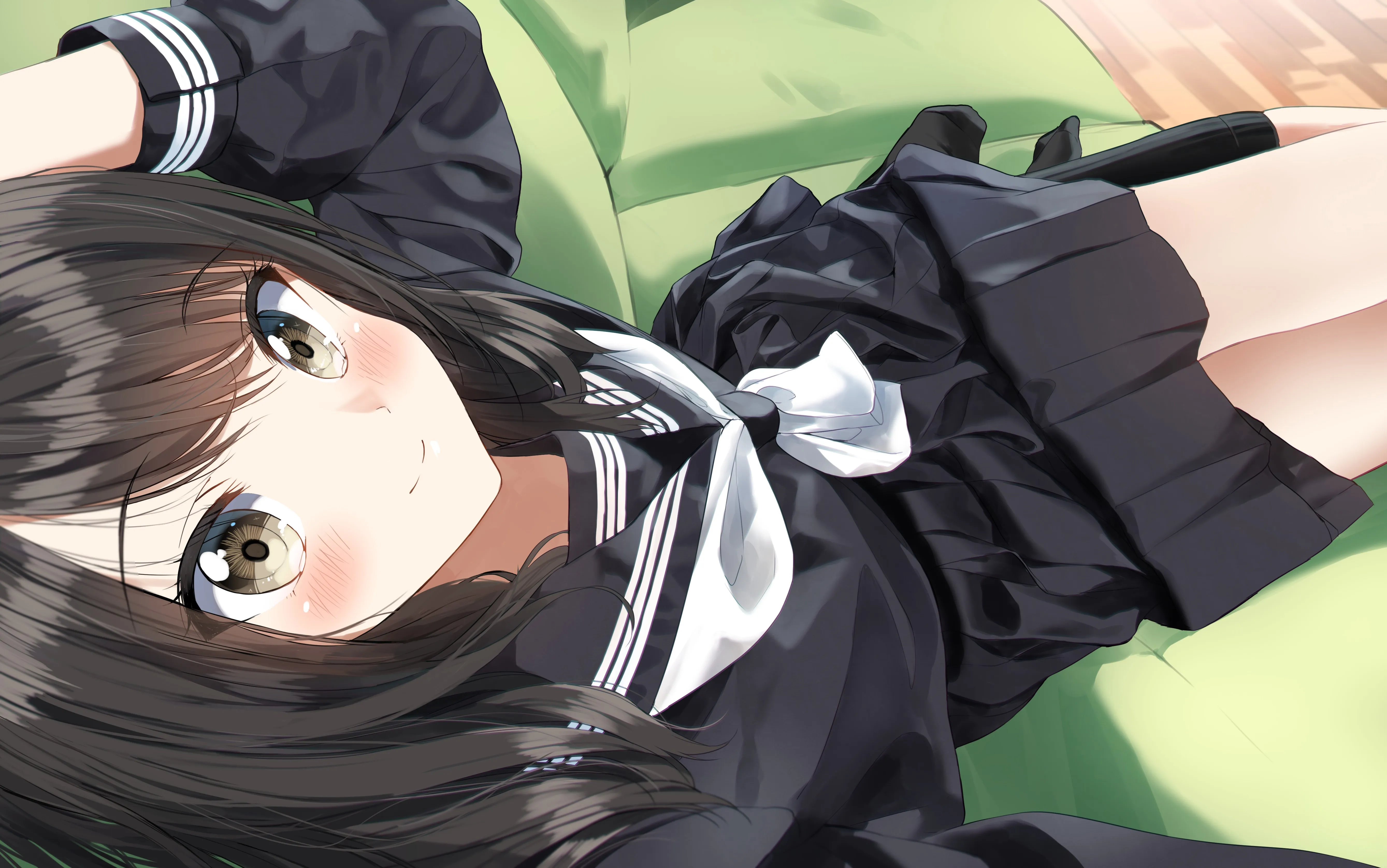 高清4k壁纸 动漫女孩抱腿 高清无水印壁纸下载