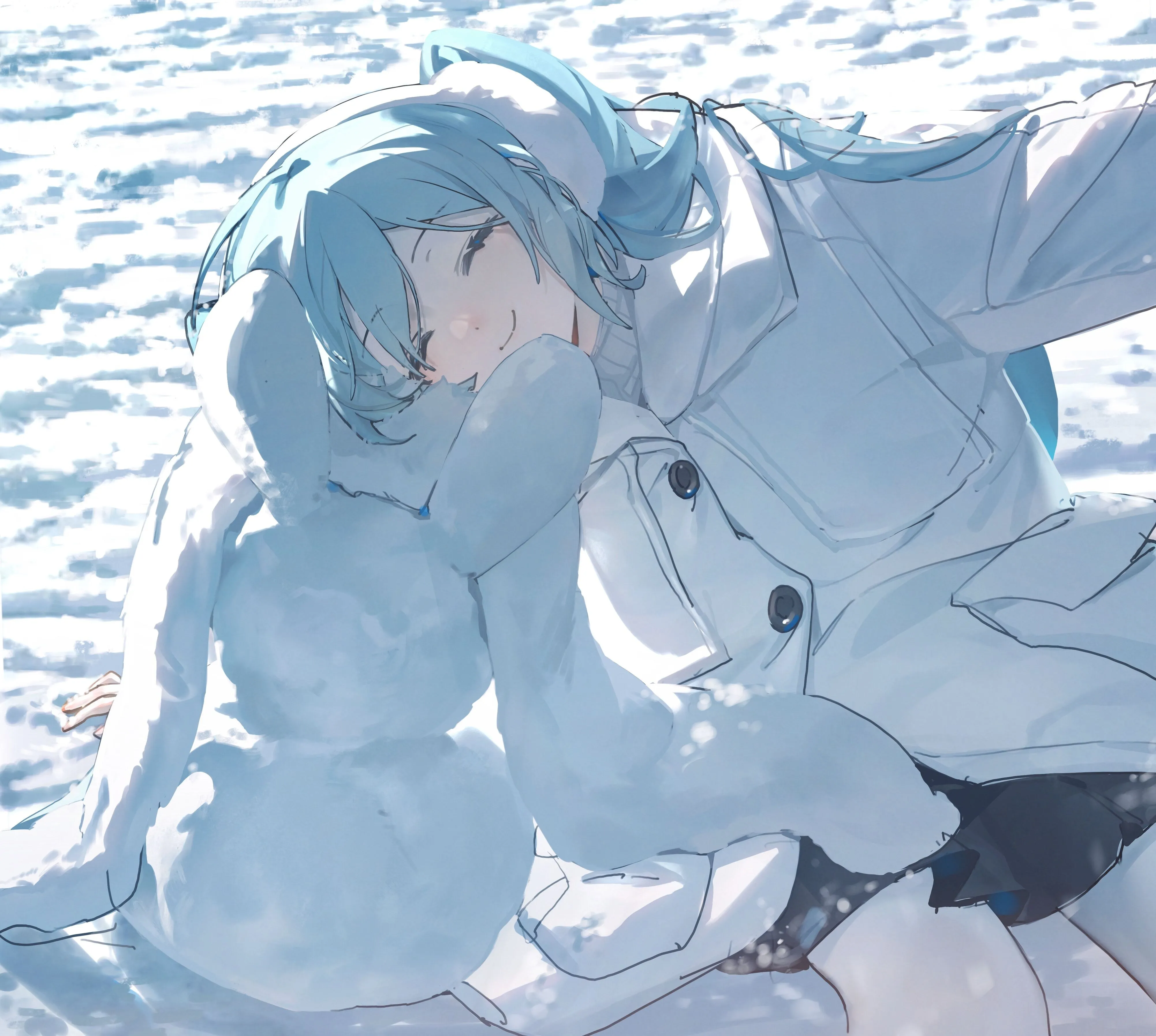 高清4k壁纸 动漫女孩抱腿 高清无水印壁纸下载