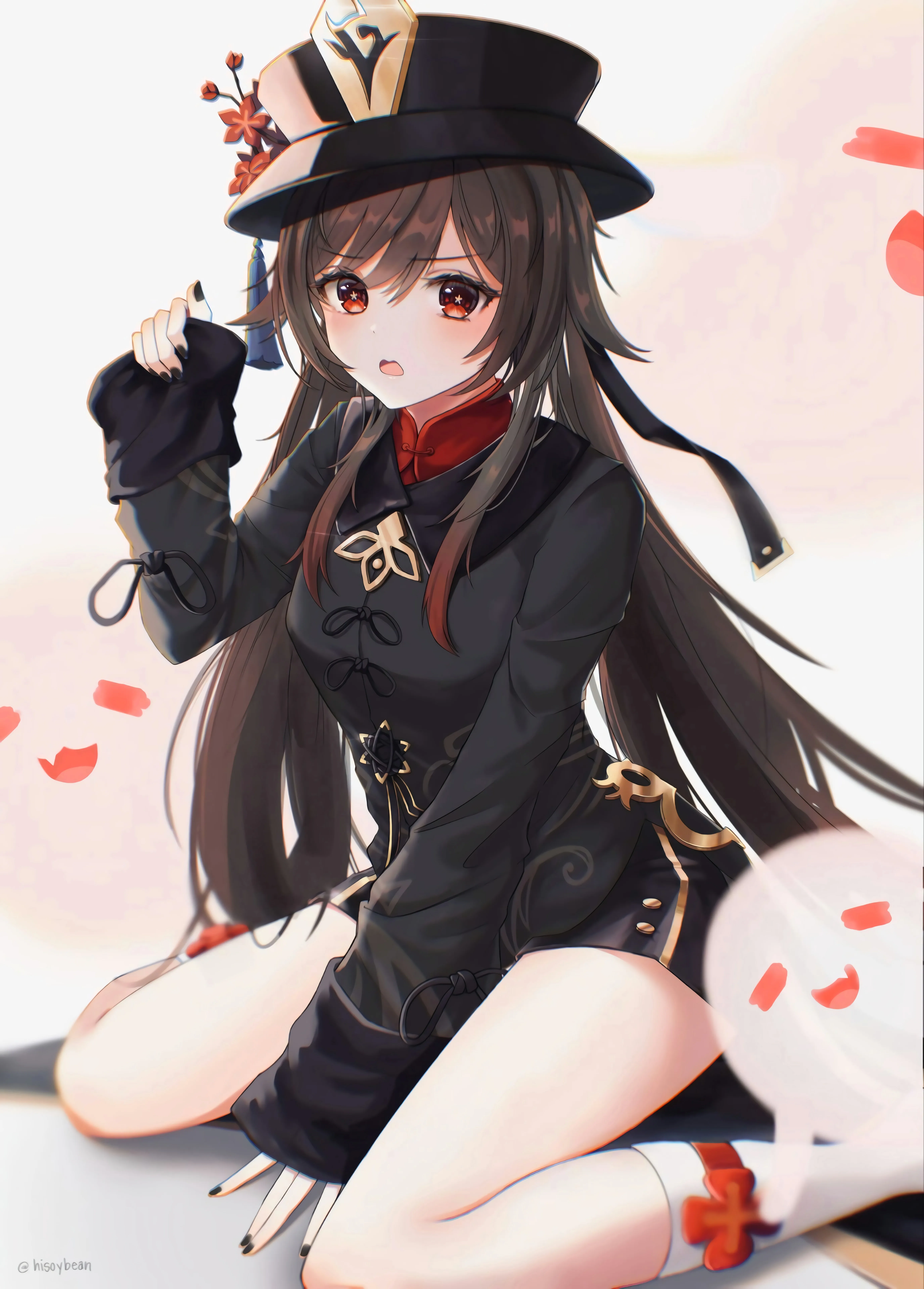 胡桃 原神 大豆 深色头发 红眼睛 长发 跪着 动漫 女孩 手机壁纸 4k壁纸