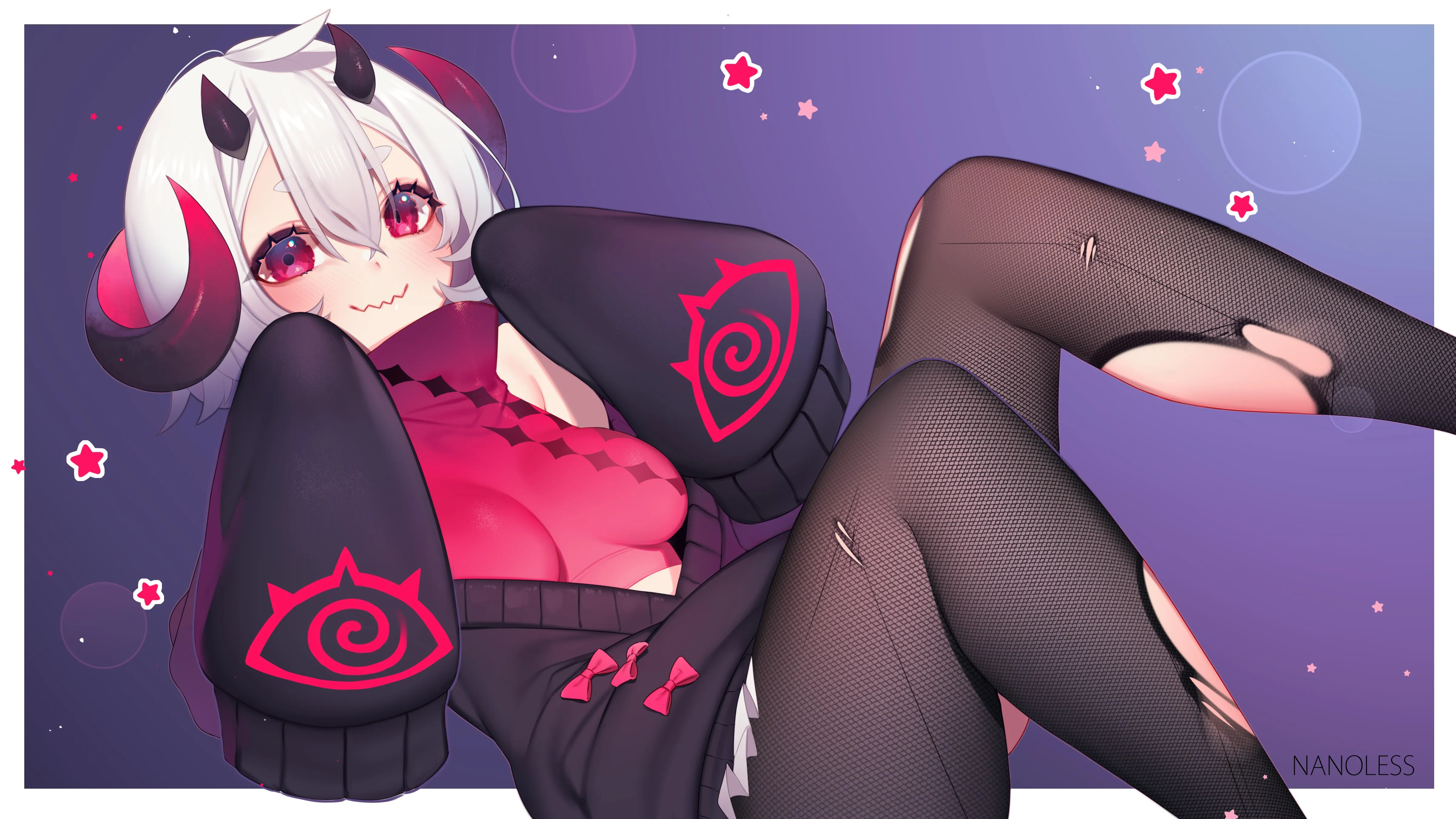 原创人物 角 红色上衣 毛衣 连裤袜 图片 绘图 插图 动漫 动漫女孩 脸红 4k壁纸