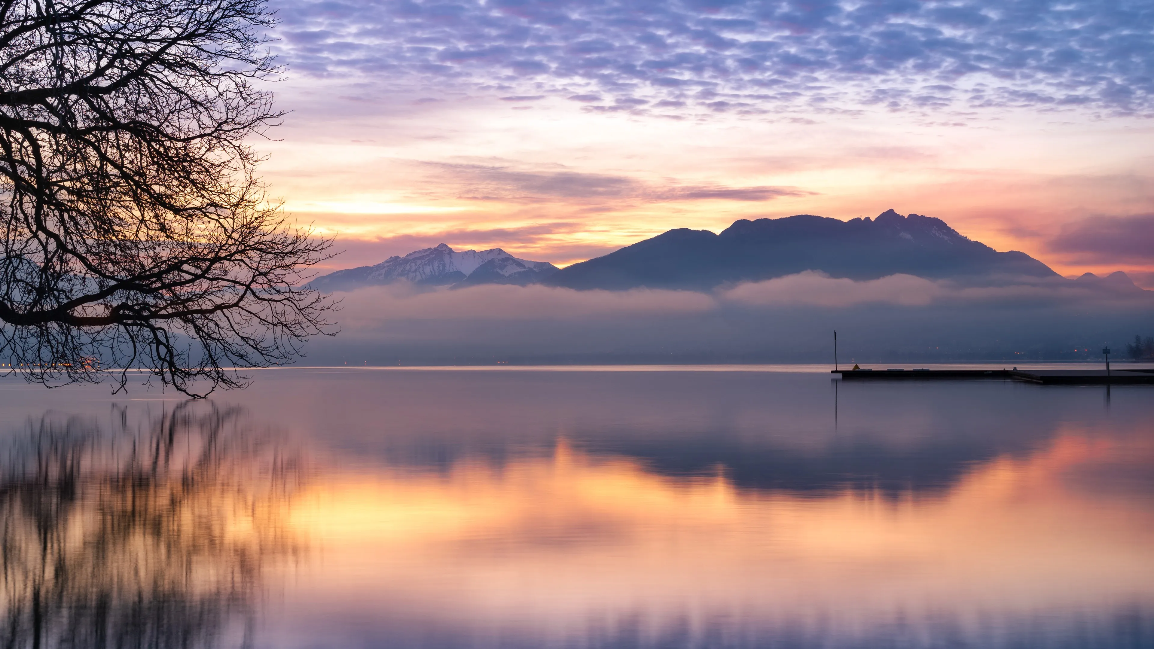 摄影 风景 日落 环境 湖泊 水 倒影 山 云 自然 树木 4k壁纸