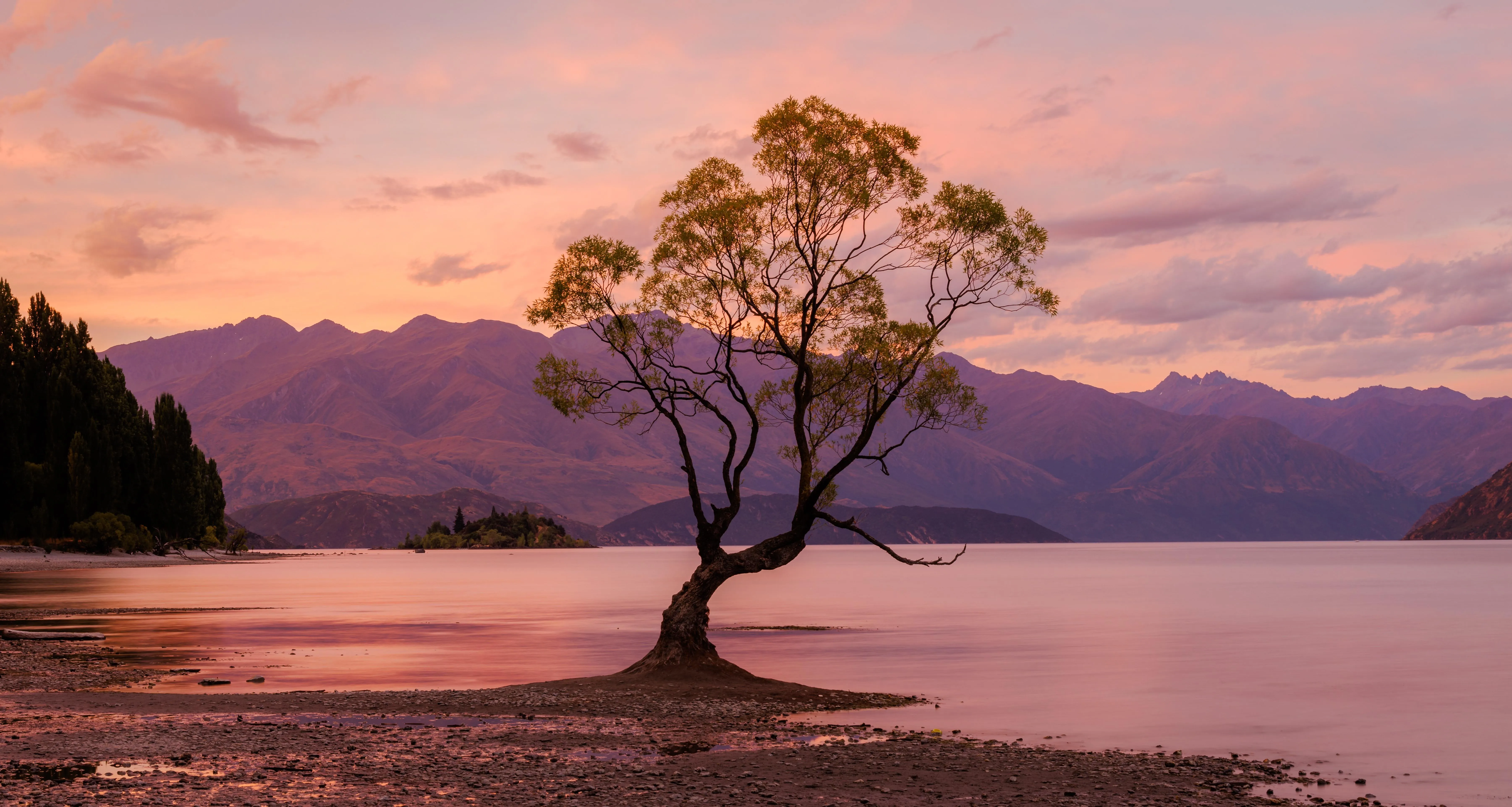 树木 自然 山脉 湖泊 风景 海滩 森林 日落 天空 4k壁纸