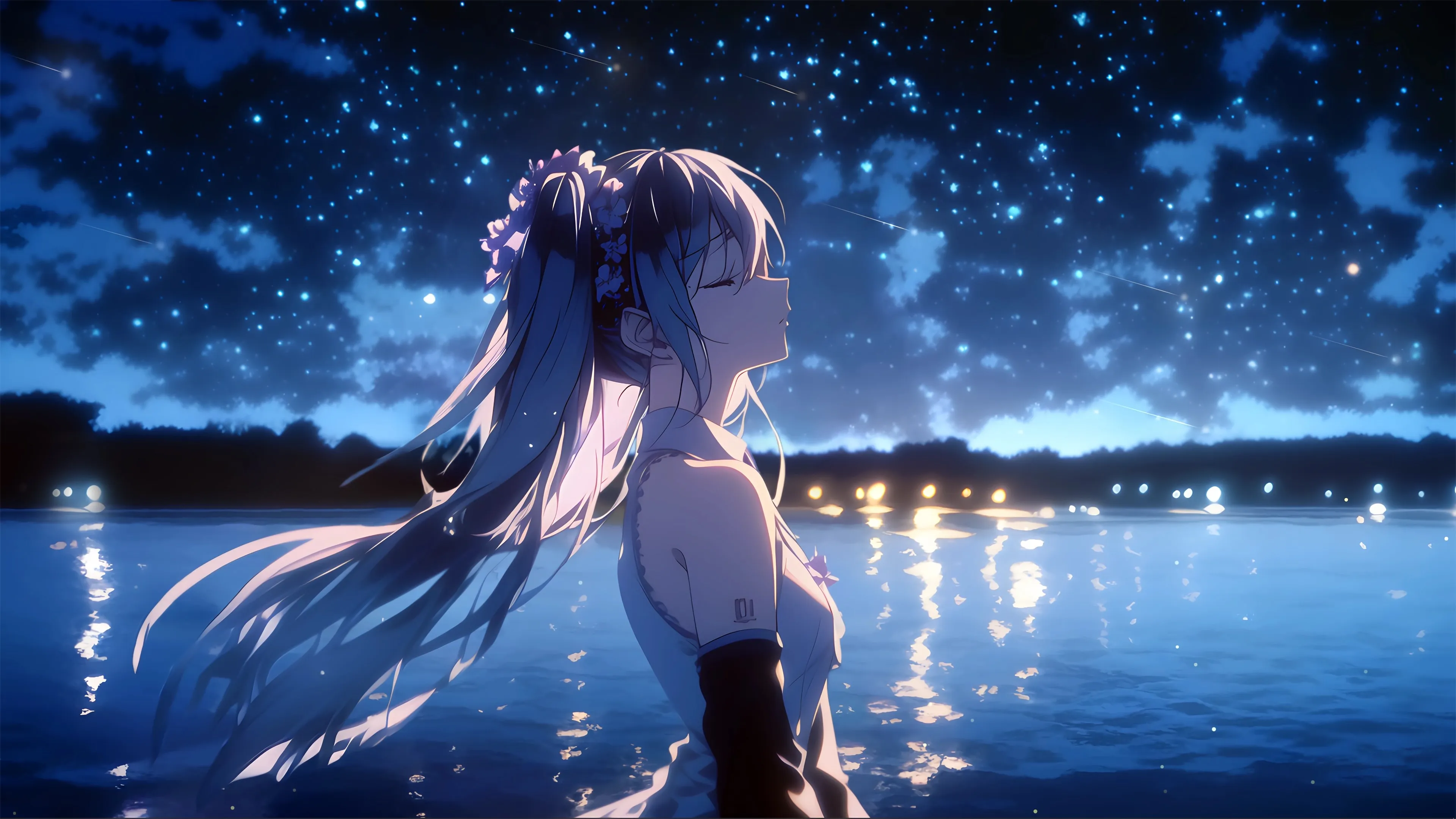 初音未来 湖畔 星辰 4K 动漫 女孩 美女 4k壁纸