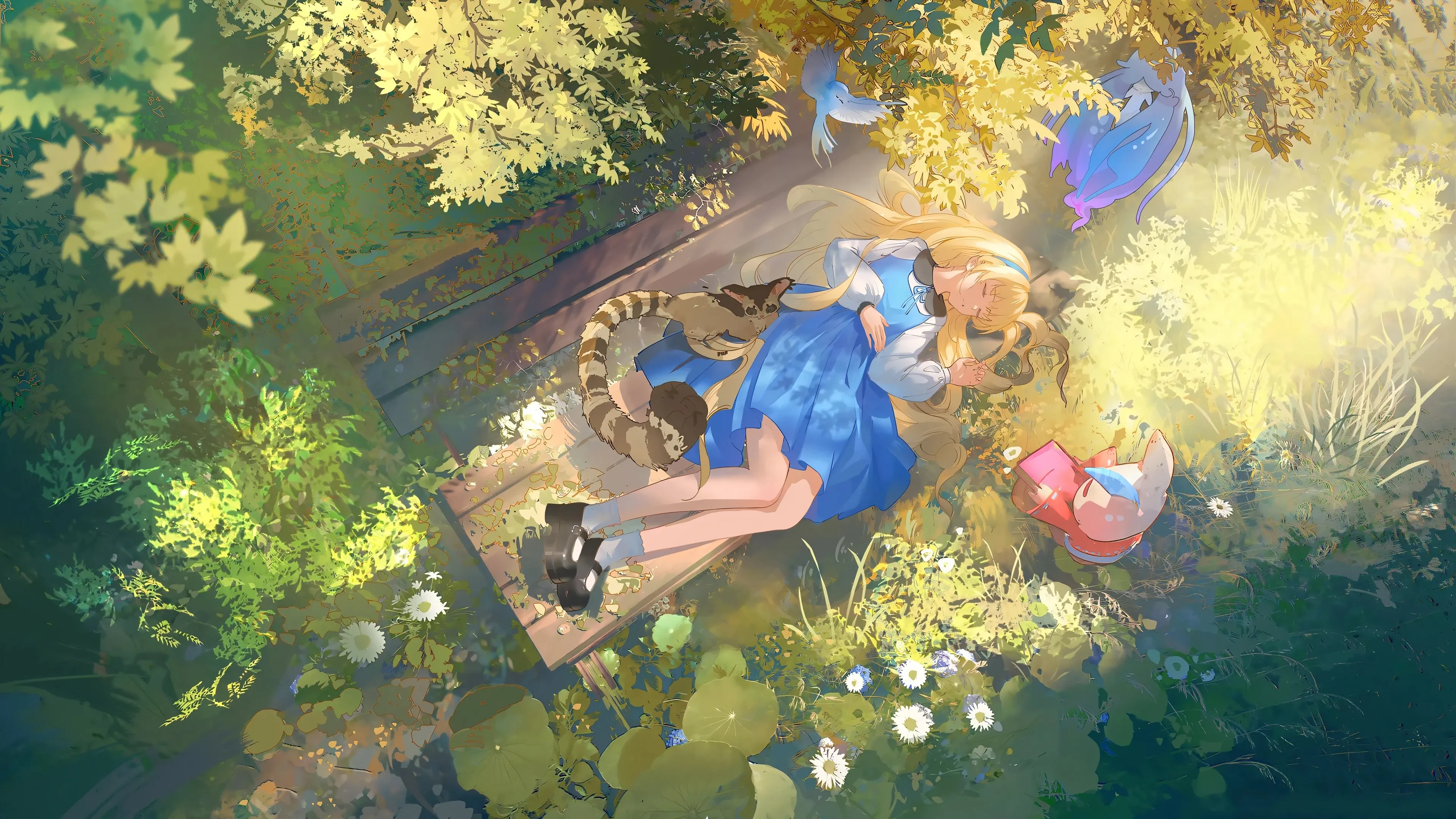 爱丽丝梦游仙境 普照 爱丽丝 魔仙 冒险 阳光 森林 睡觉 4k壁纸