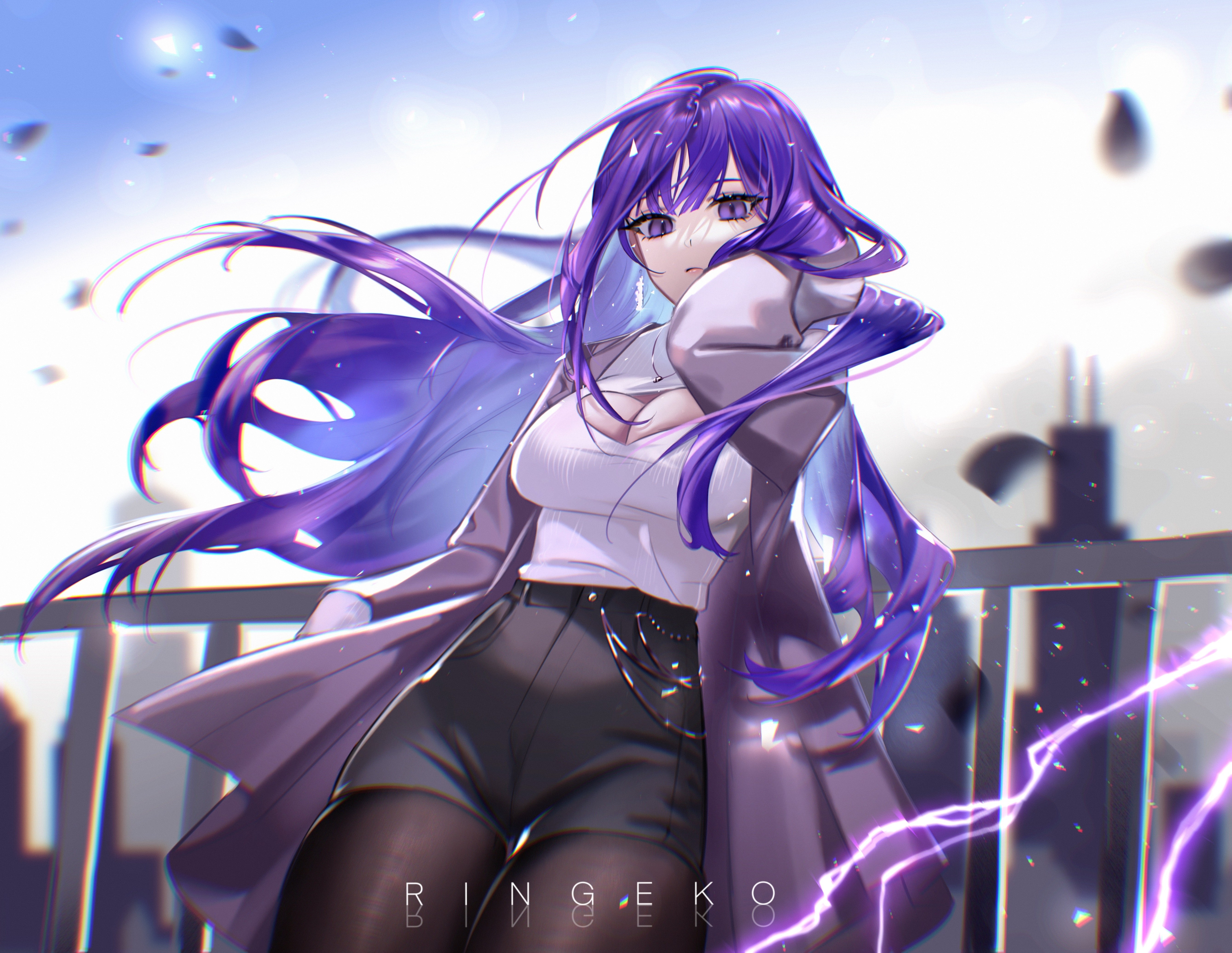 紫发 原神 动漫 女孩 紫眼 4k壁纸