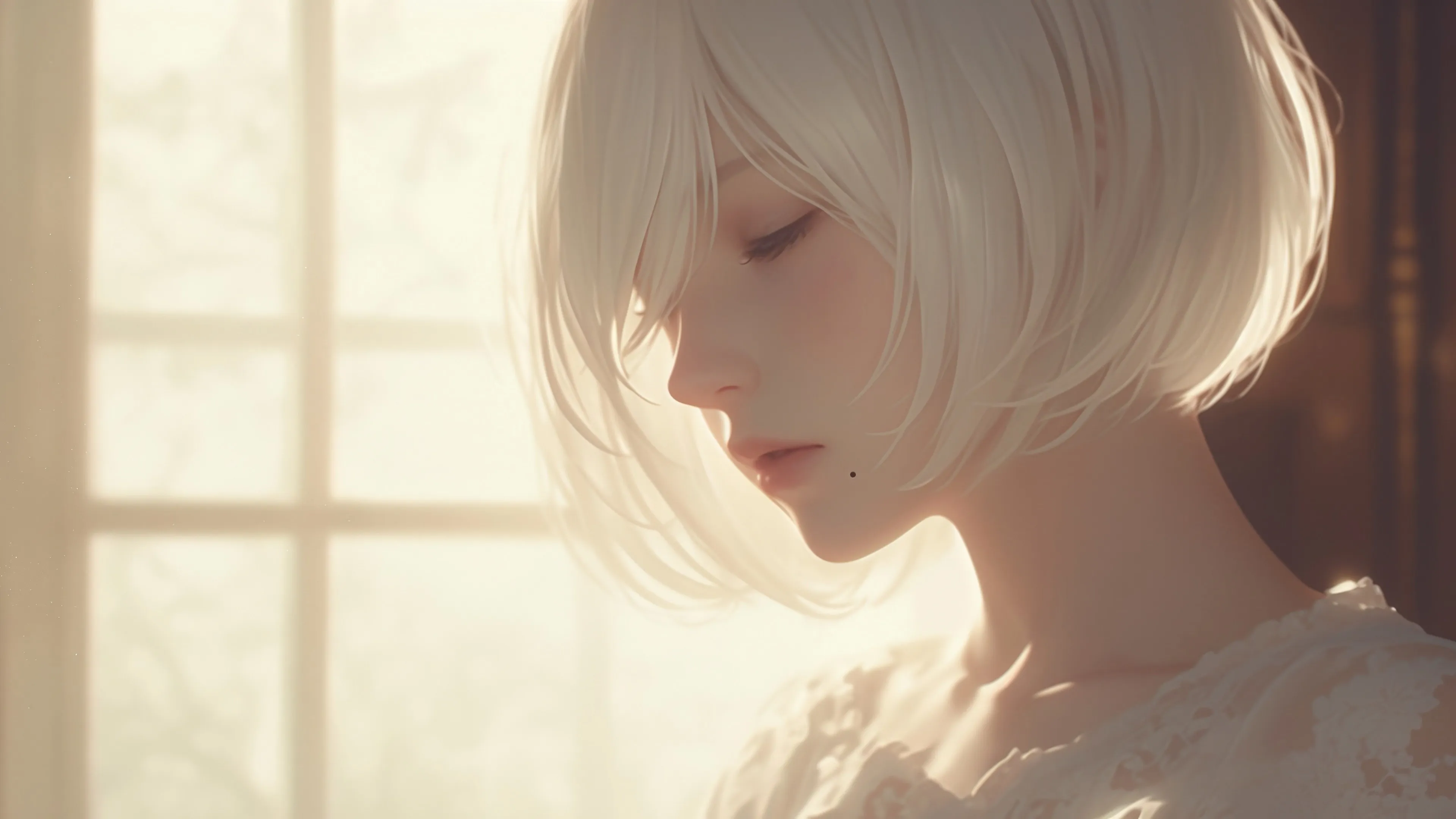 2b 闭眼 唯美 短发 波波头 4K 壁纸 痣 动漫 4k壁纸