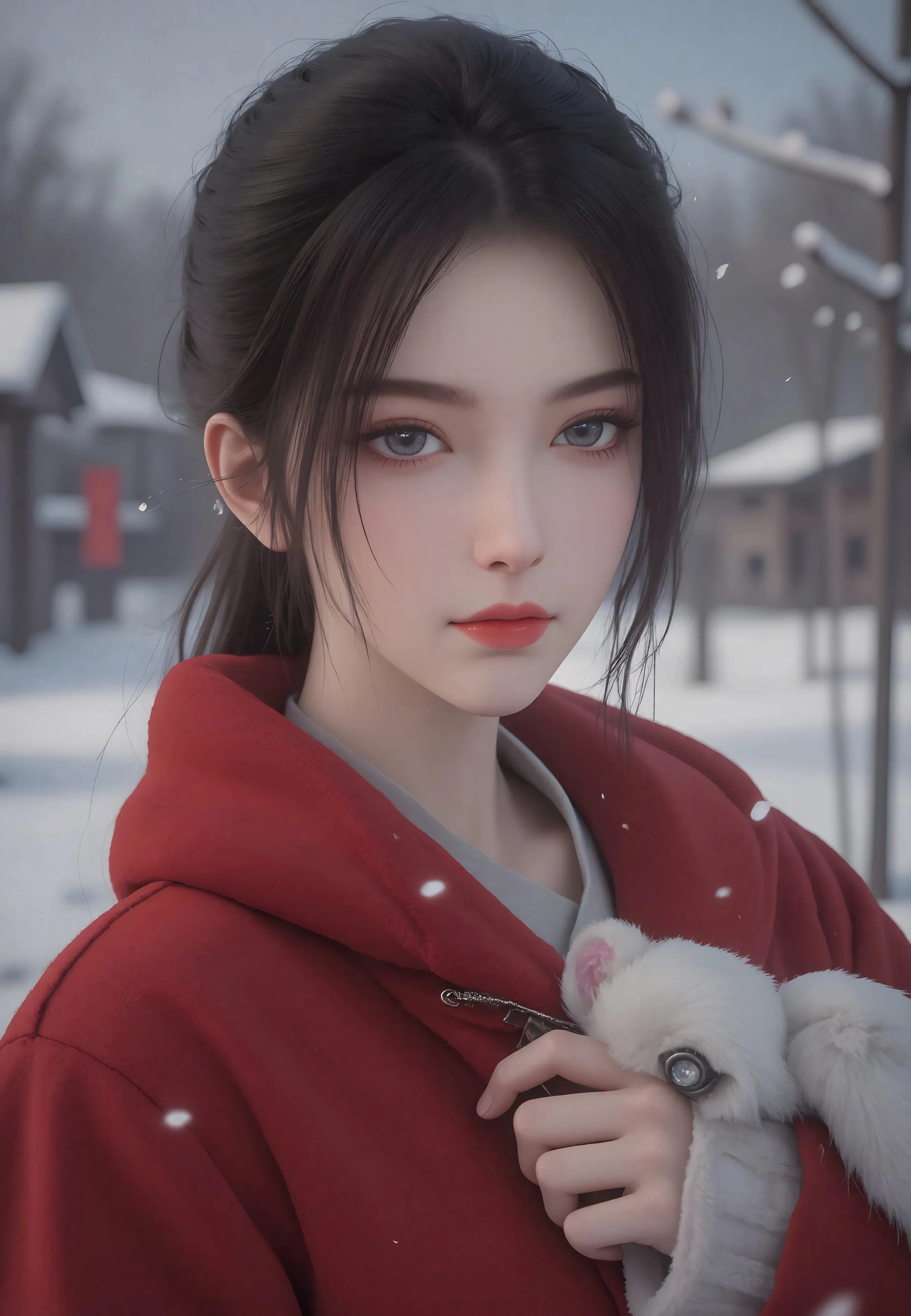 冬 红色衣服 女孩 4k 手机 壁纸 竖屏 动漫 手机壁纸 2K壁纸