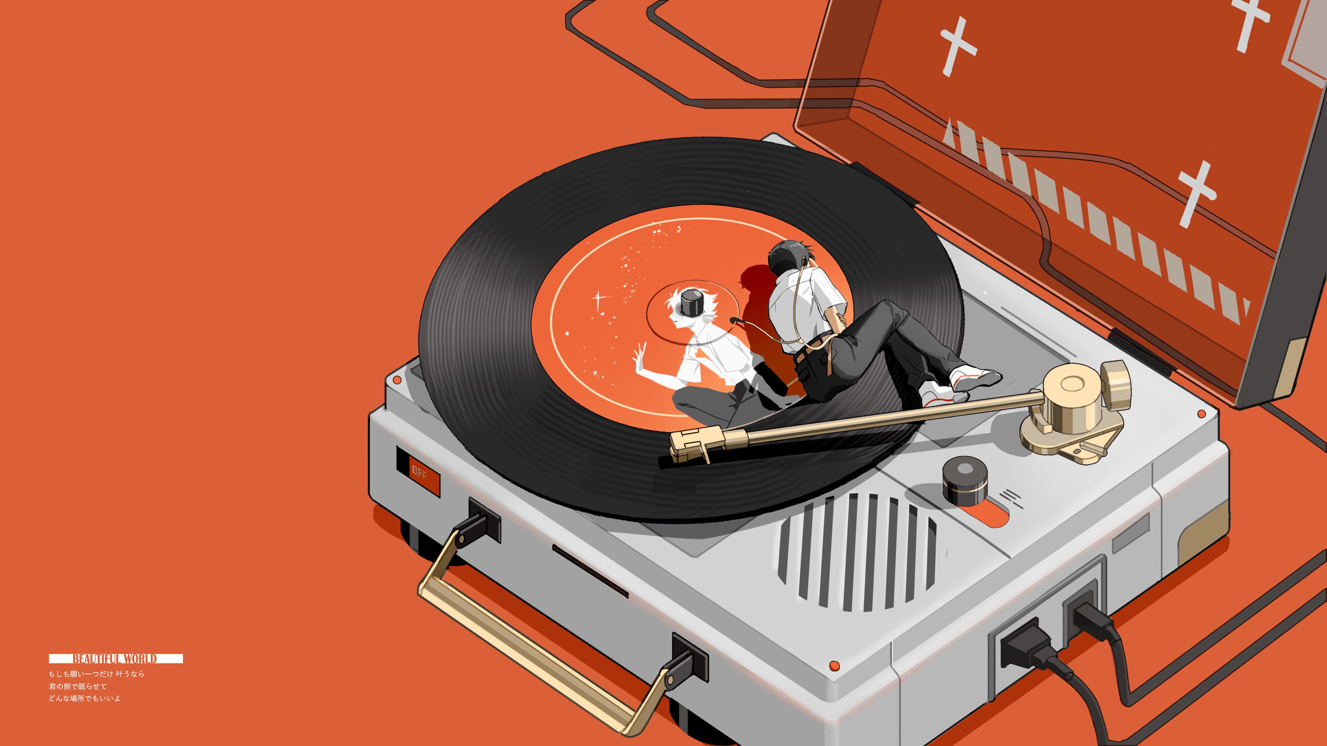 动漫 男孩 新世纪福音战士 真司 留声机 简单背景 校服 耳机 4k壁纸