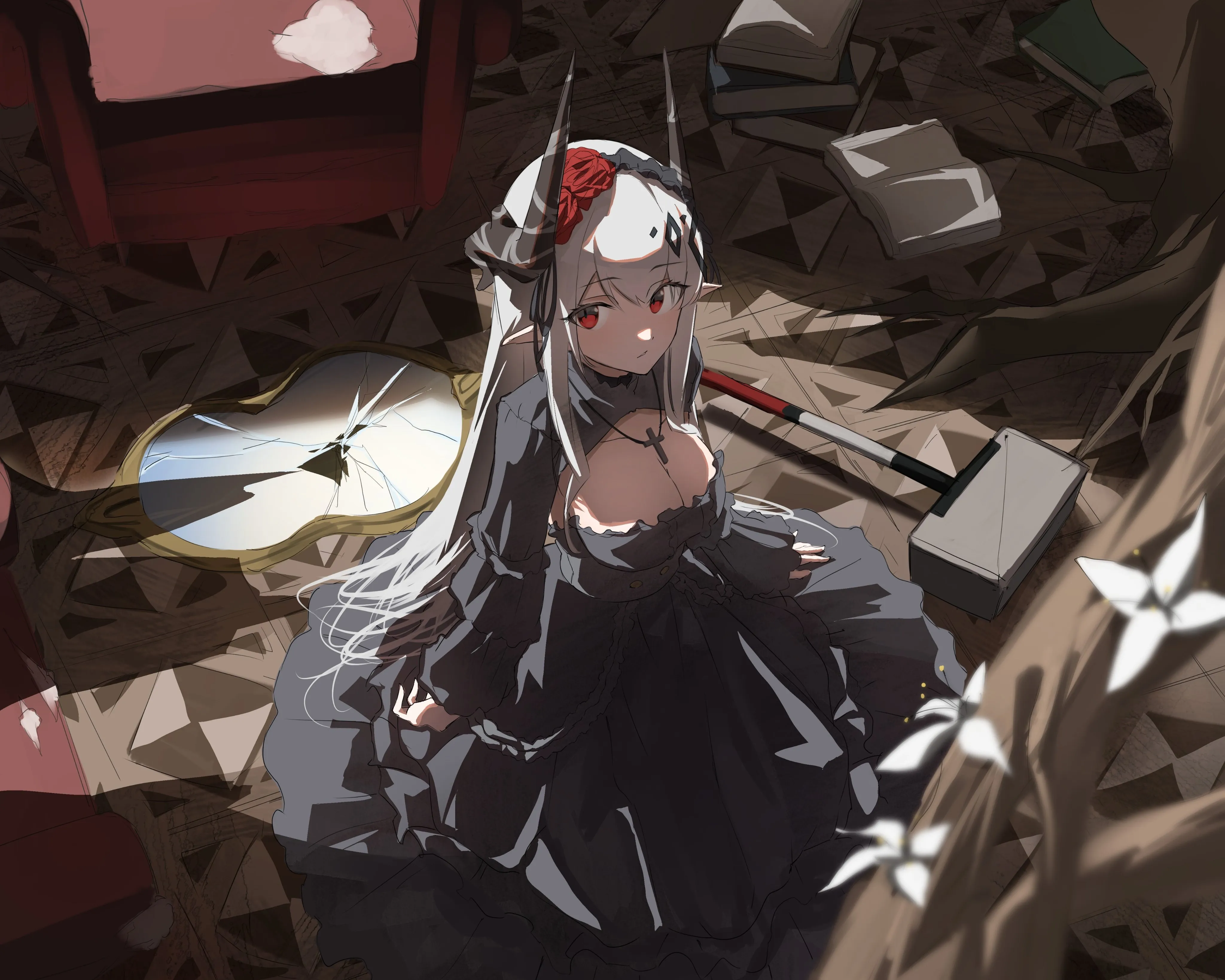 红眼睛 明日方舟 动漫 女孩 十字架 项链 兽耳 角 4k壁纸