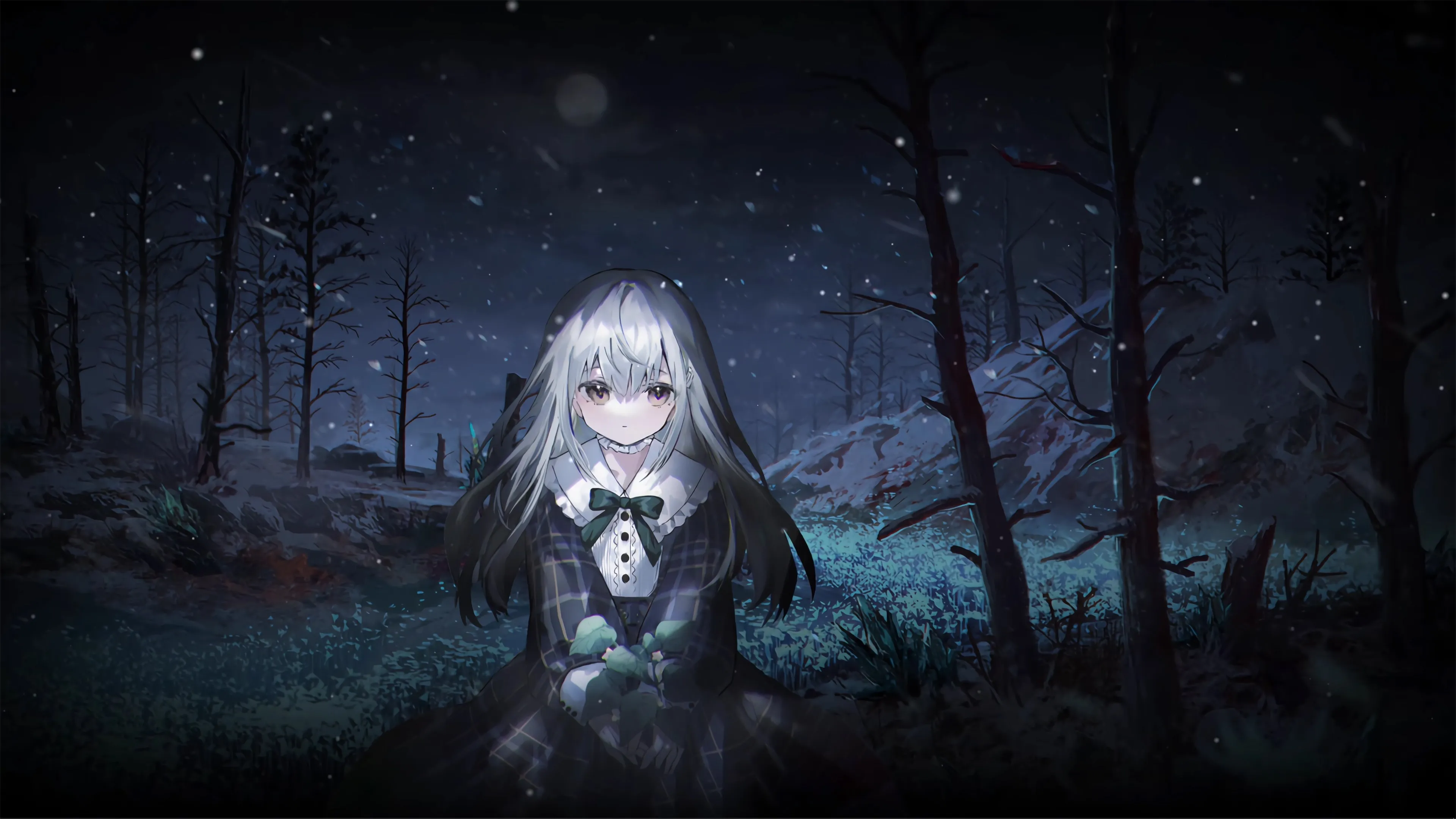 高清4k壁纸 动漫女孩抱腿 高清无水印壁纸下载