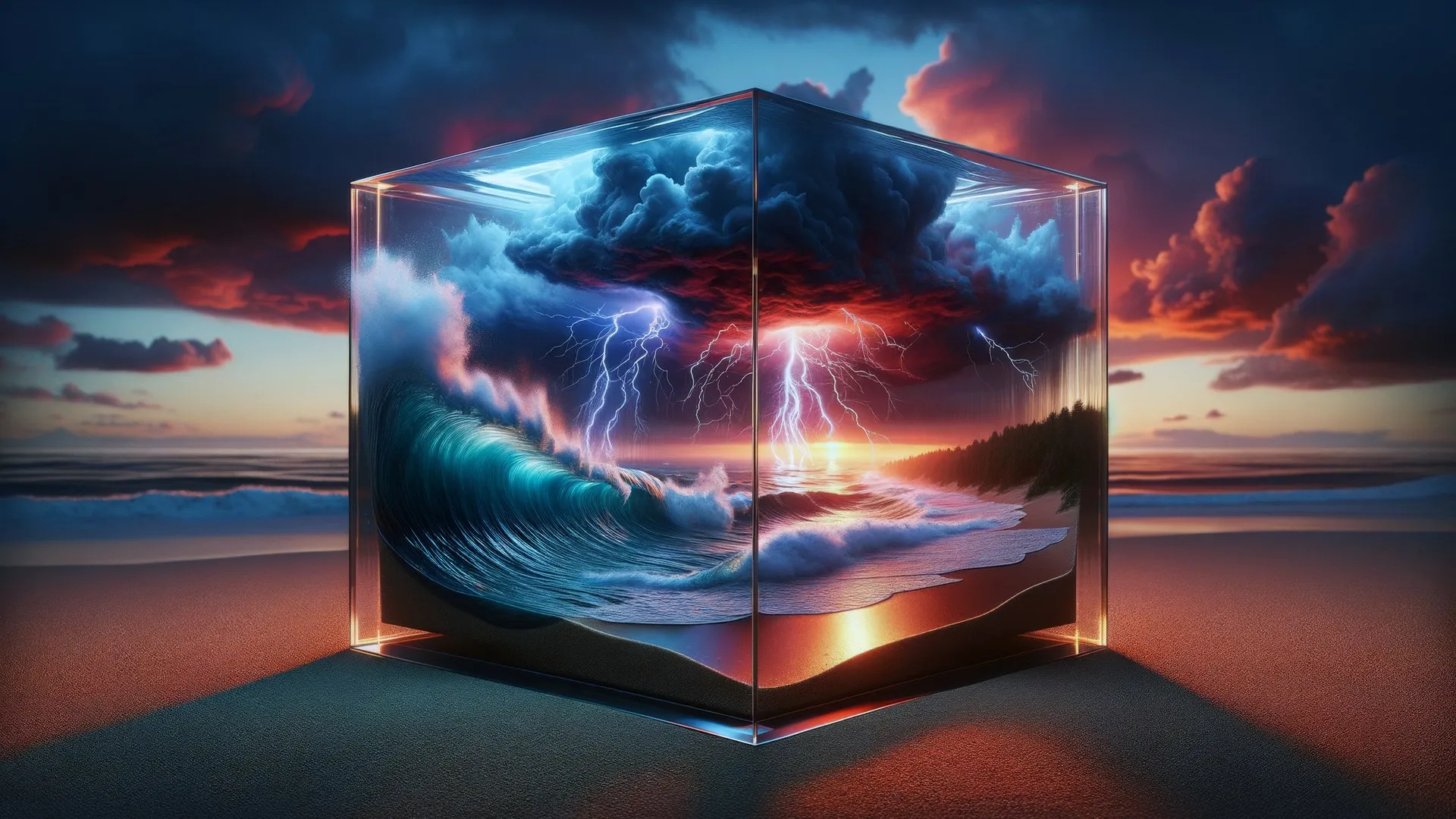 AI艺术 五颜六色 立方体 雷雨 海滩 桌面壁纸 4k壁纸