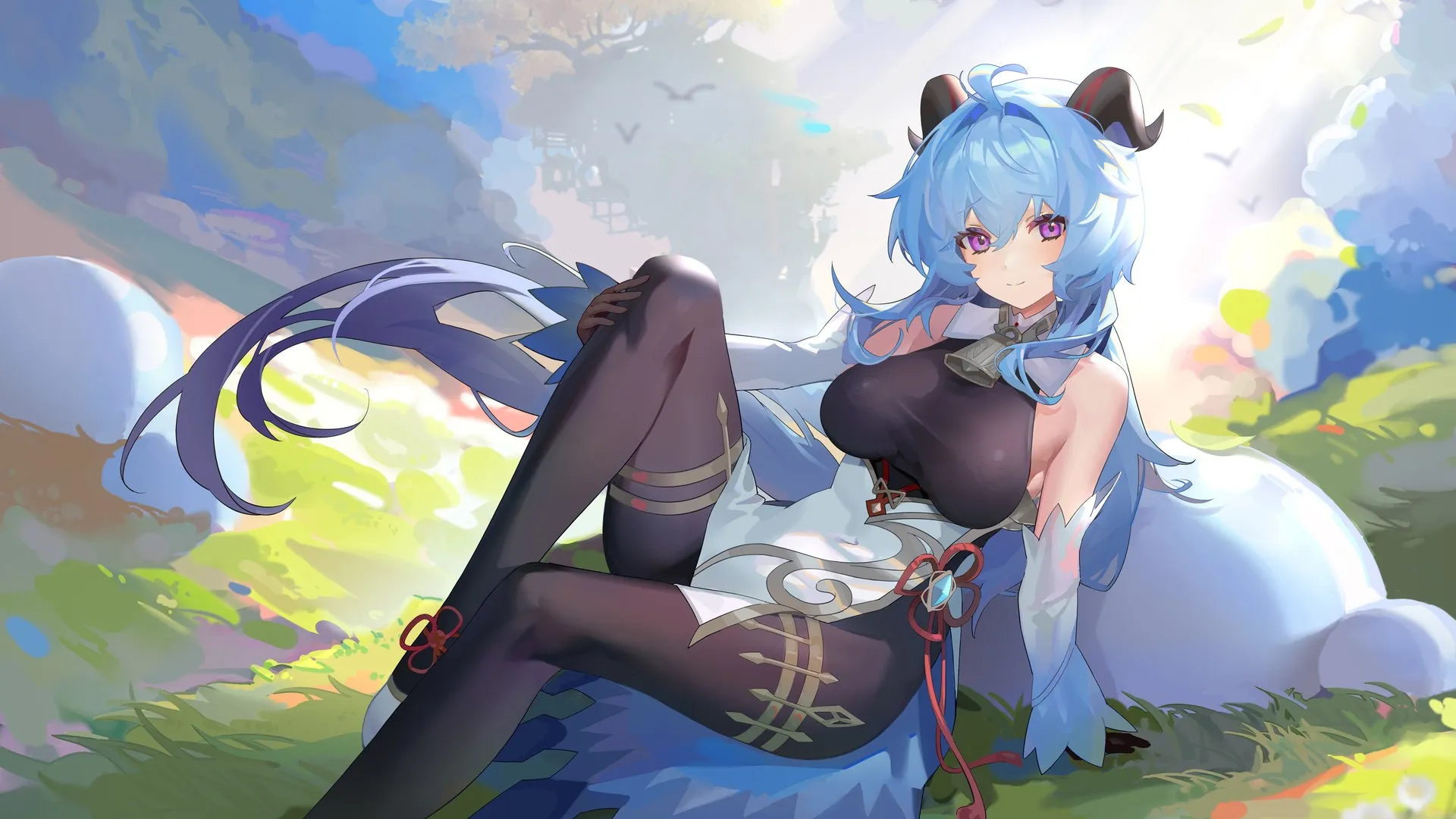 高清4k壁纸 动漫女孩抱腿 高清无水印壁纸下载