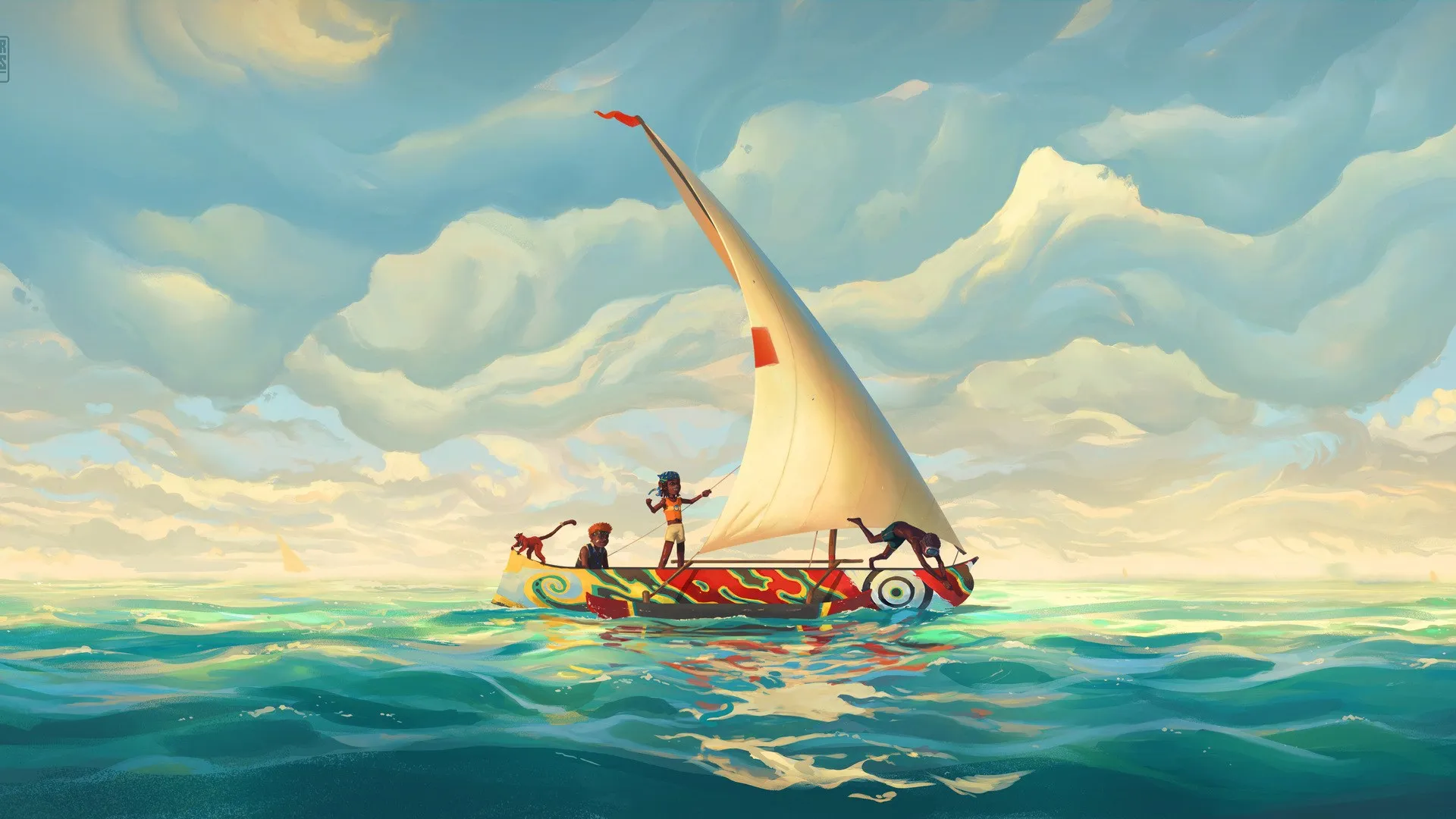 儿童 AI艺术 插图 风景 海洋 水 船 云 帆船 自然 天空