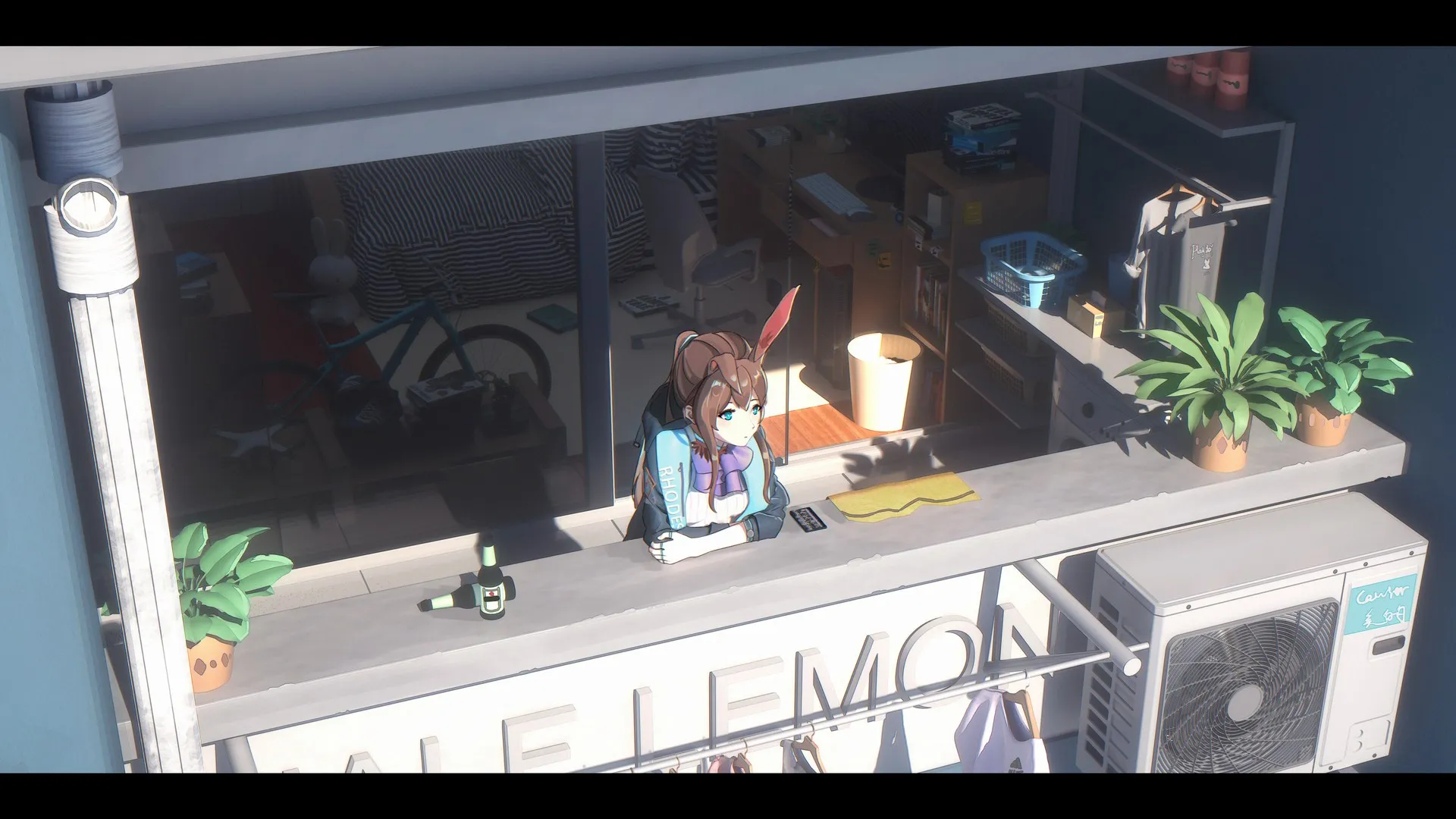阳台上眺望的女孩