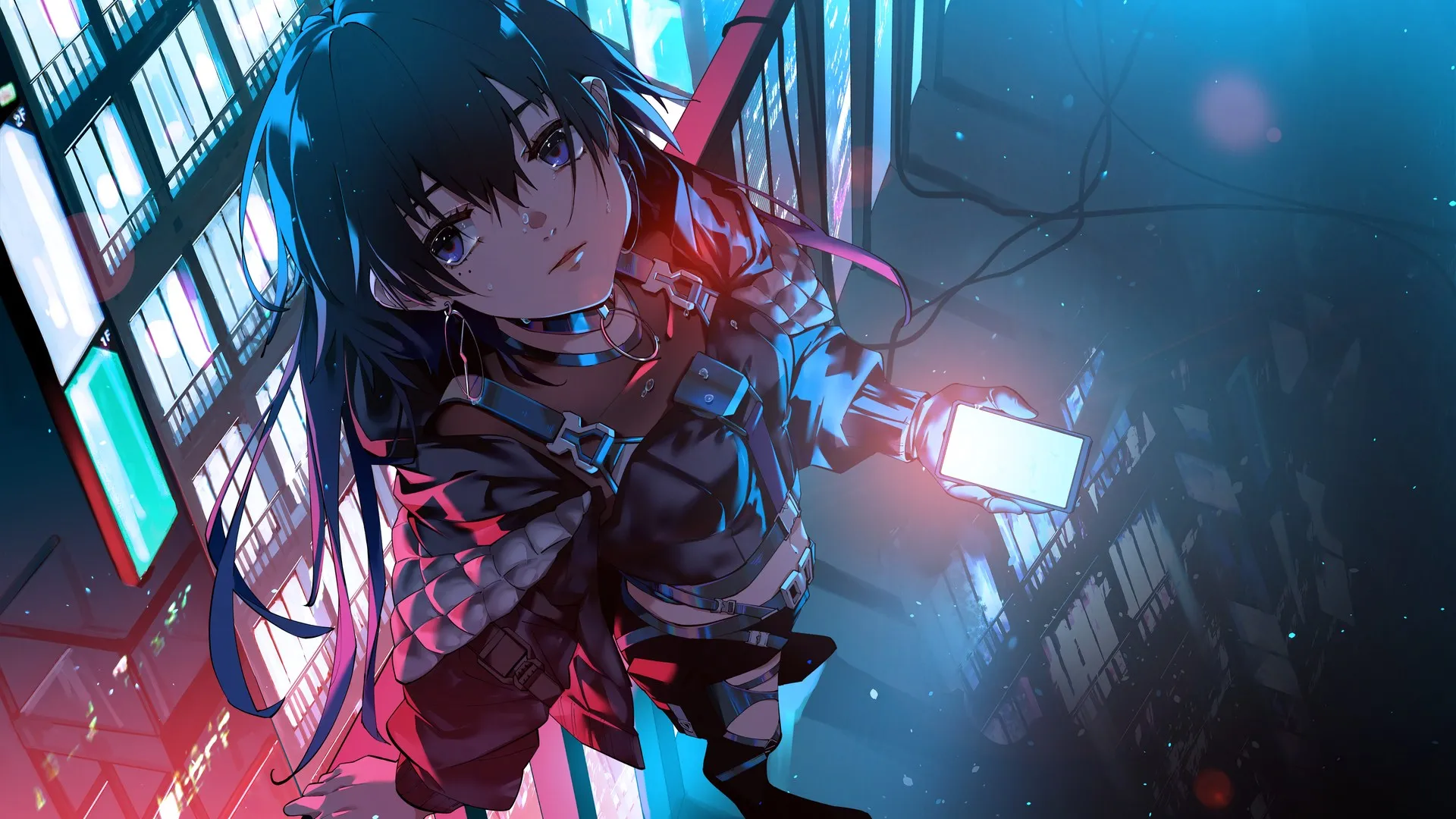 优质4k壁纸 动漫女孩城市之光桌面壁纸 高清无水印壁纸下载