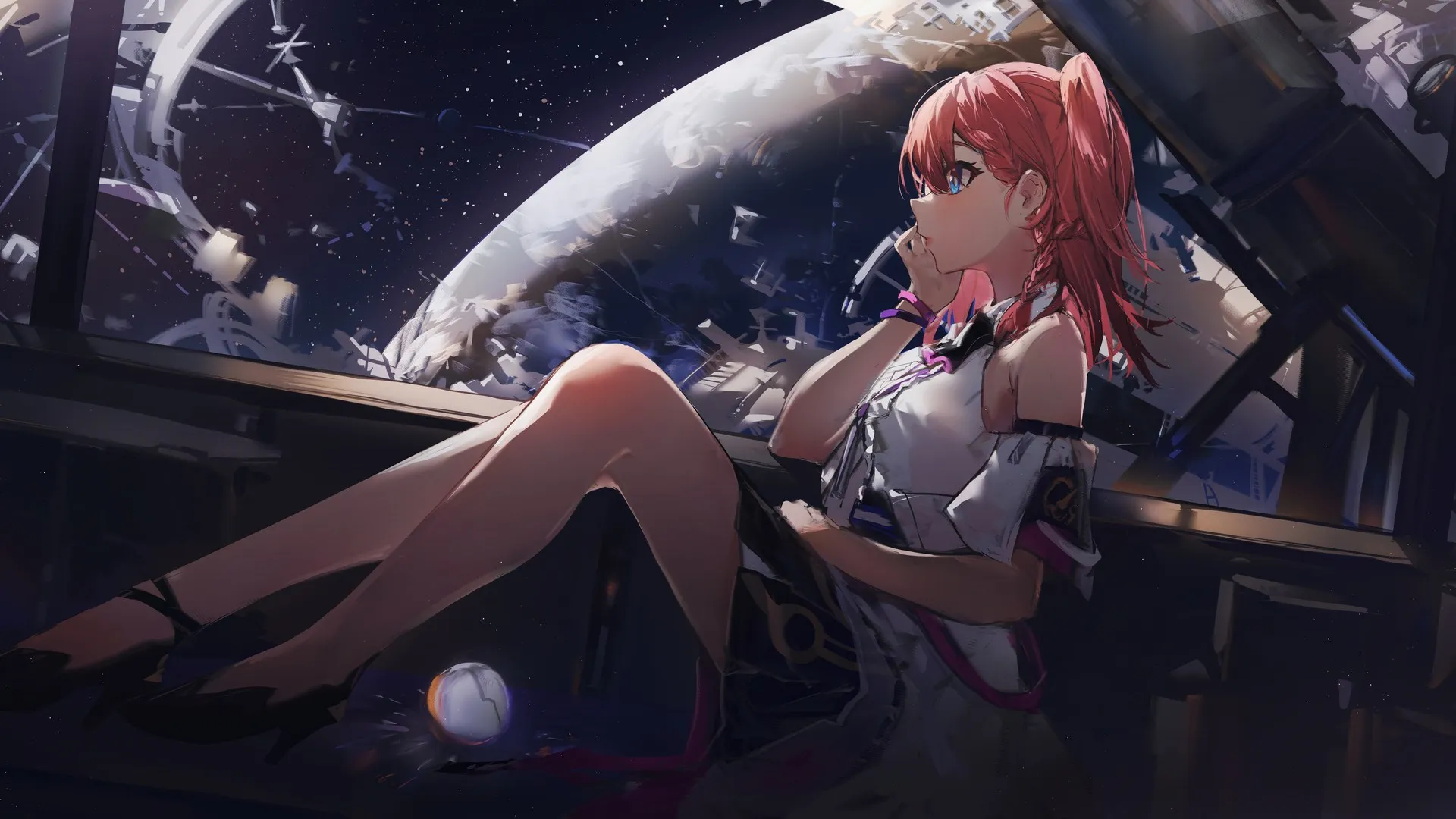 高清4k壁纸 动漫女孩抱腿 高清无水印壁纸下载