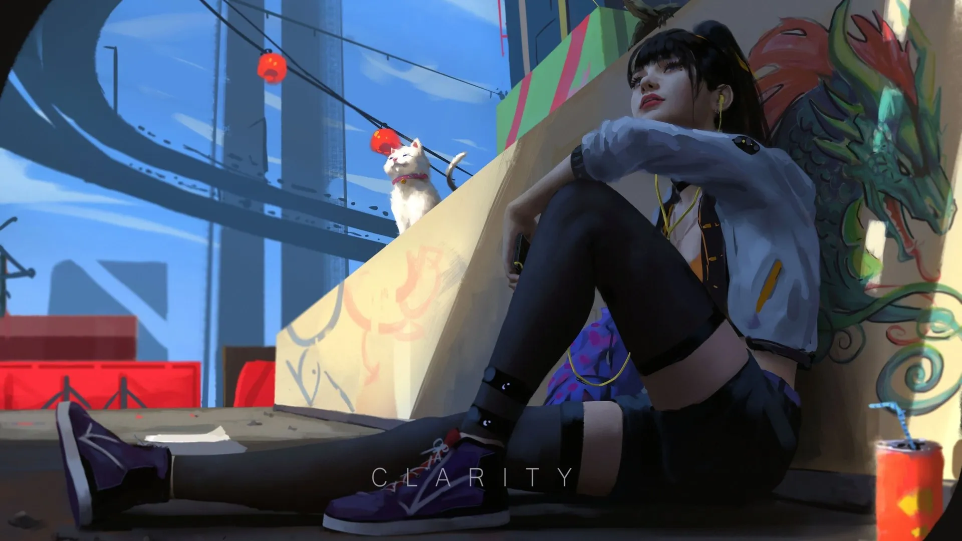 高清4k壁纸 动漫女孩抱腿 高清无水印壁纸下载
