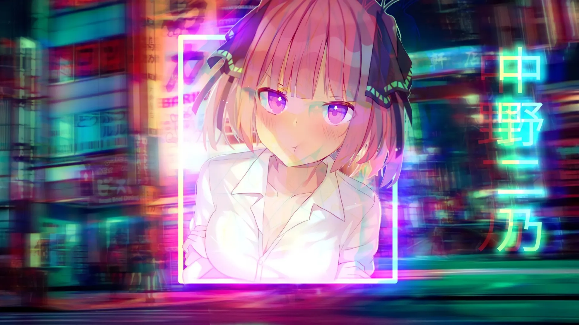 最新4k壁纸 动漫女孩霓虹灯桌面壁纸 高清无水印壁纸下载