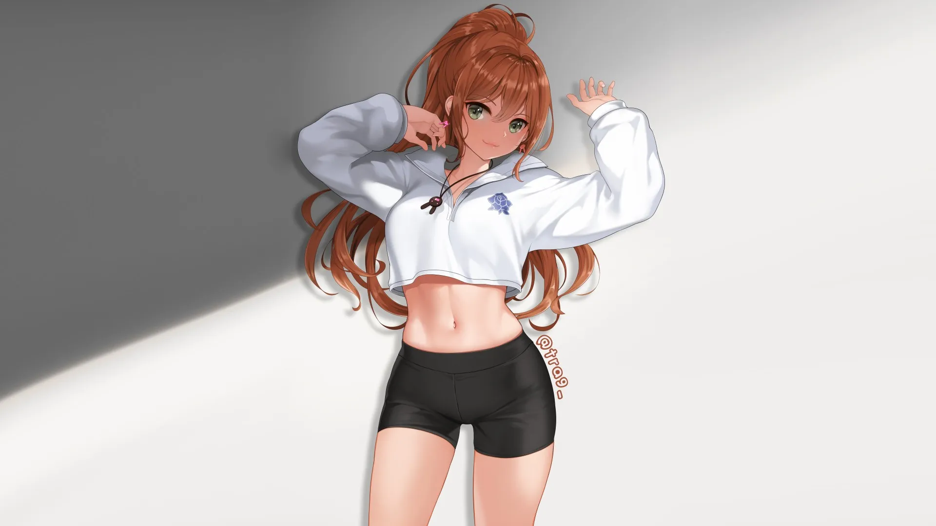 动漫女孩 简单背景 动漫 自行车短裤  桌面壁纸 8K壁纸