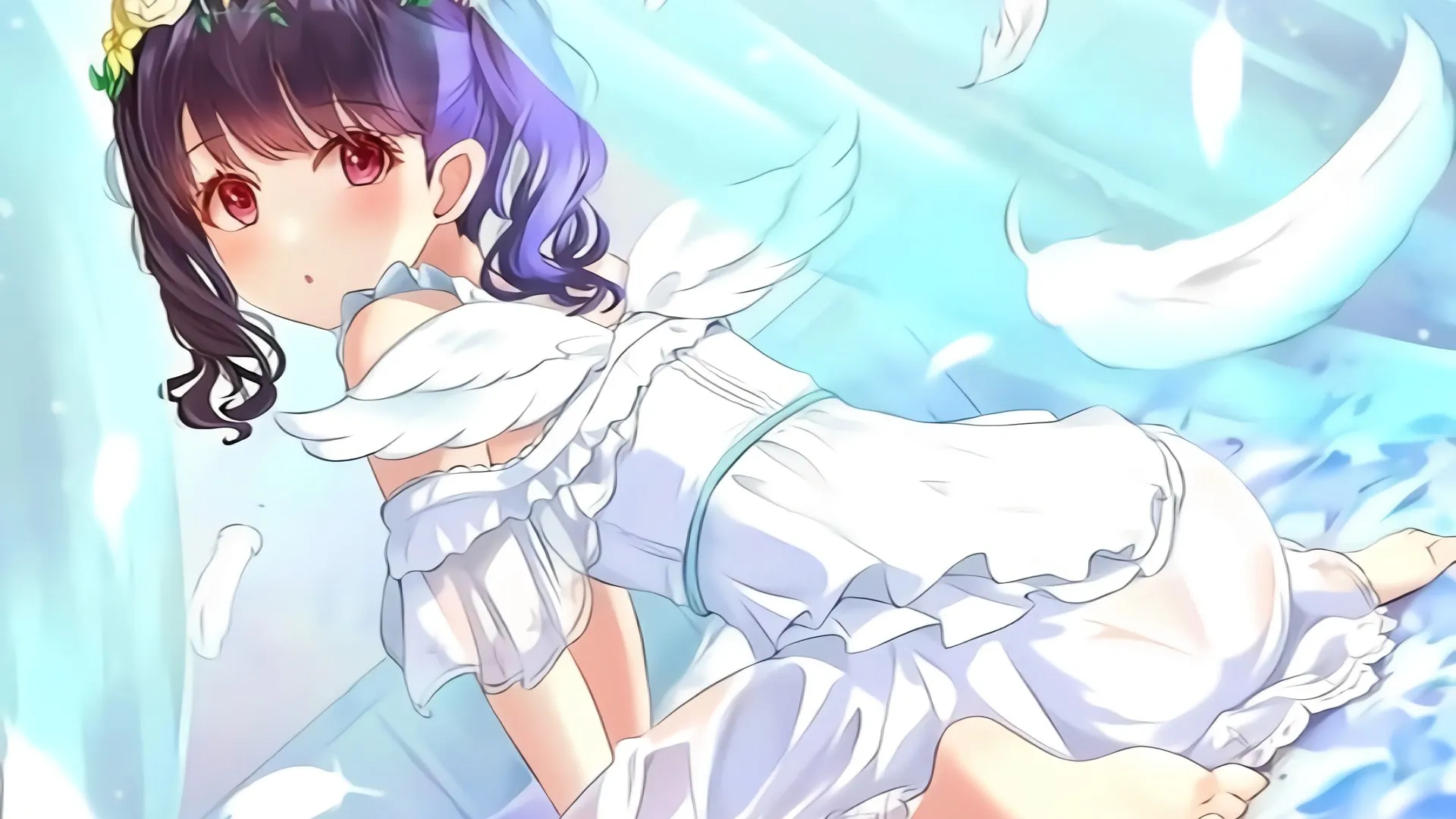 短发 红眼睛 鲜花 翅膀  桌面壁纸 4k壁纸