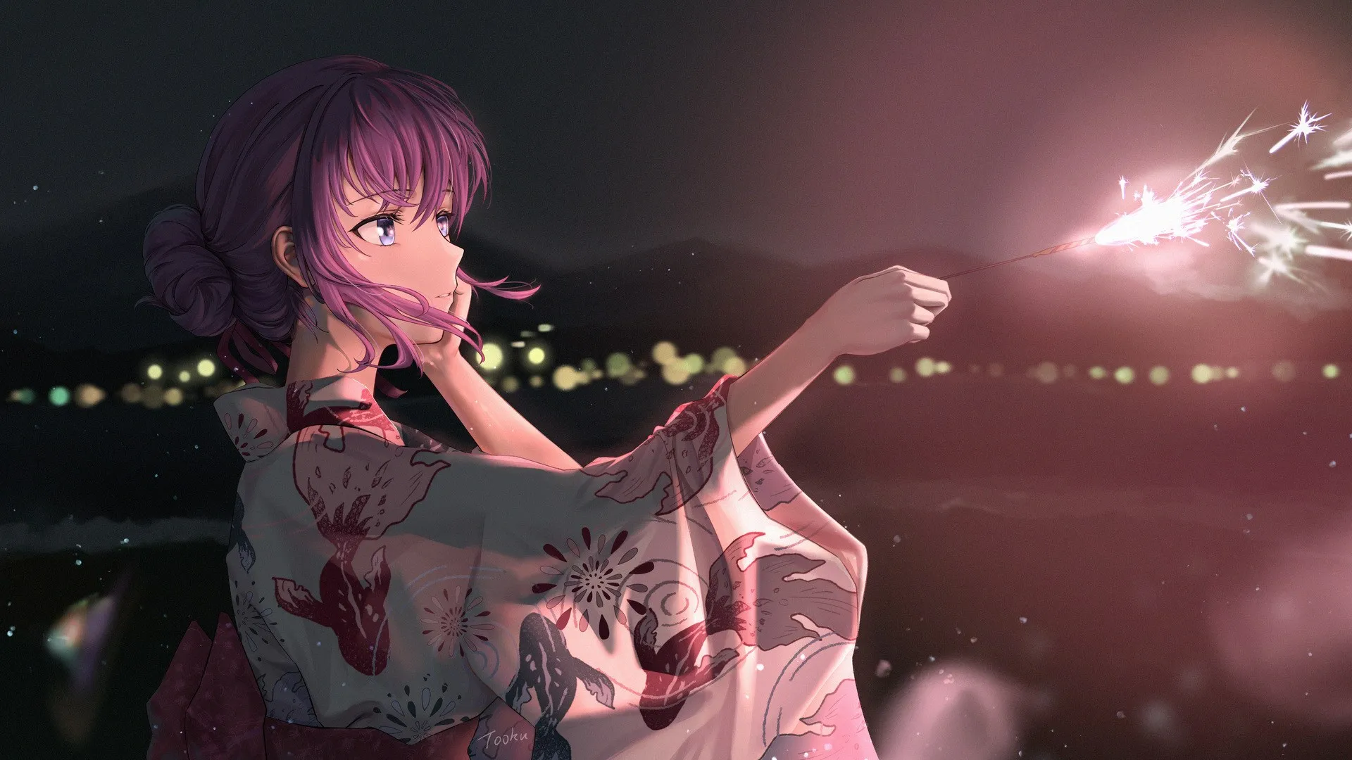 动漫 动漫女孩 闪闪发光 连衣裙 夜晚 服装  桌面壁纸 4k壁纸