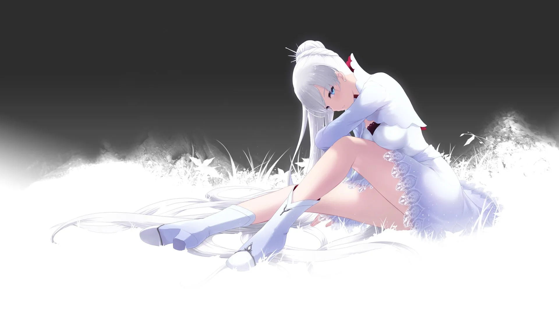 高清4k壁纸 动漫女孩抱腿 高清无水印壁纸下载