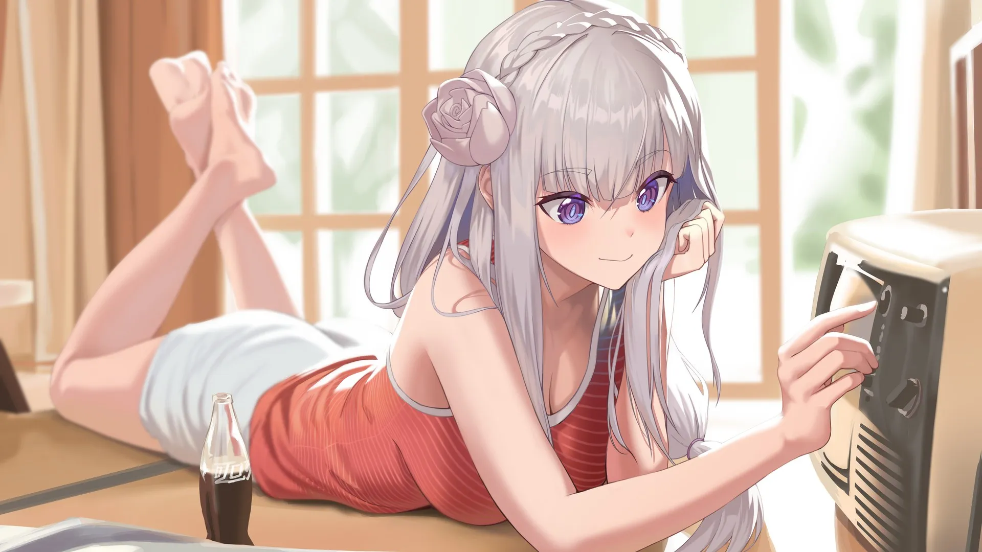 最新4k壁纸 动漫女孩双腿向上桌面壁纸 高清无水印壁纸下载