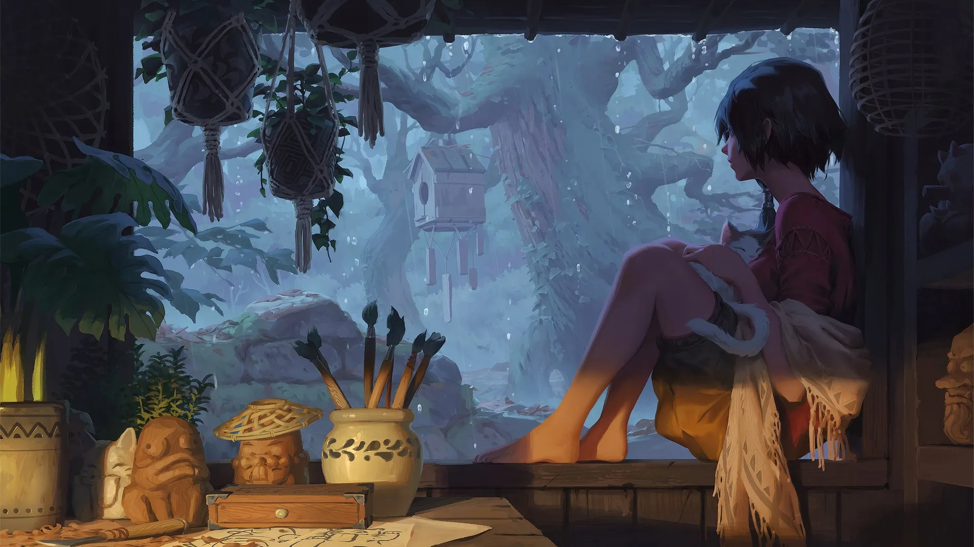 将目光投向别处 AI艺术 雨水 植物盆栽 树木 动物  桌面壁纸 4k壁纸